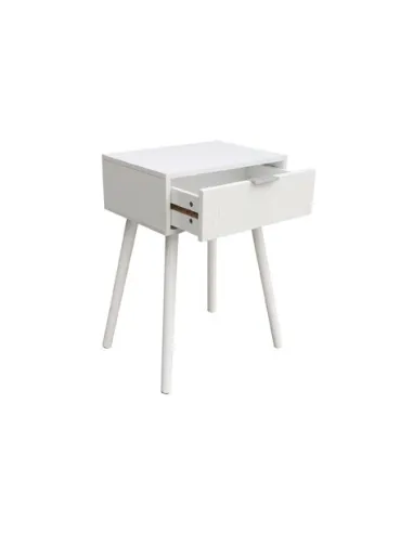 Mesilla de noche con patas nórdicas 1 cajón gran capacidad con frente decorativo lineas Color blanco Medidas: 40 x 30 x 60 cm - Unidad venta : caja 1 Ud - Volumen : 0 013 M 3 x Ud Entradas previstas : 200 Ud(s) - 10 / 12 semanas Colores disponibles : Blanco En stock : 108 Uds Pino / Rattan En stock : 740 Uds En stock : 108 Uds