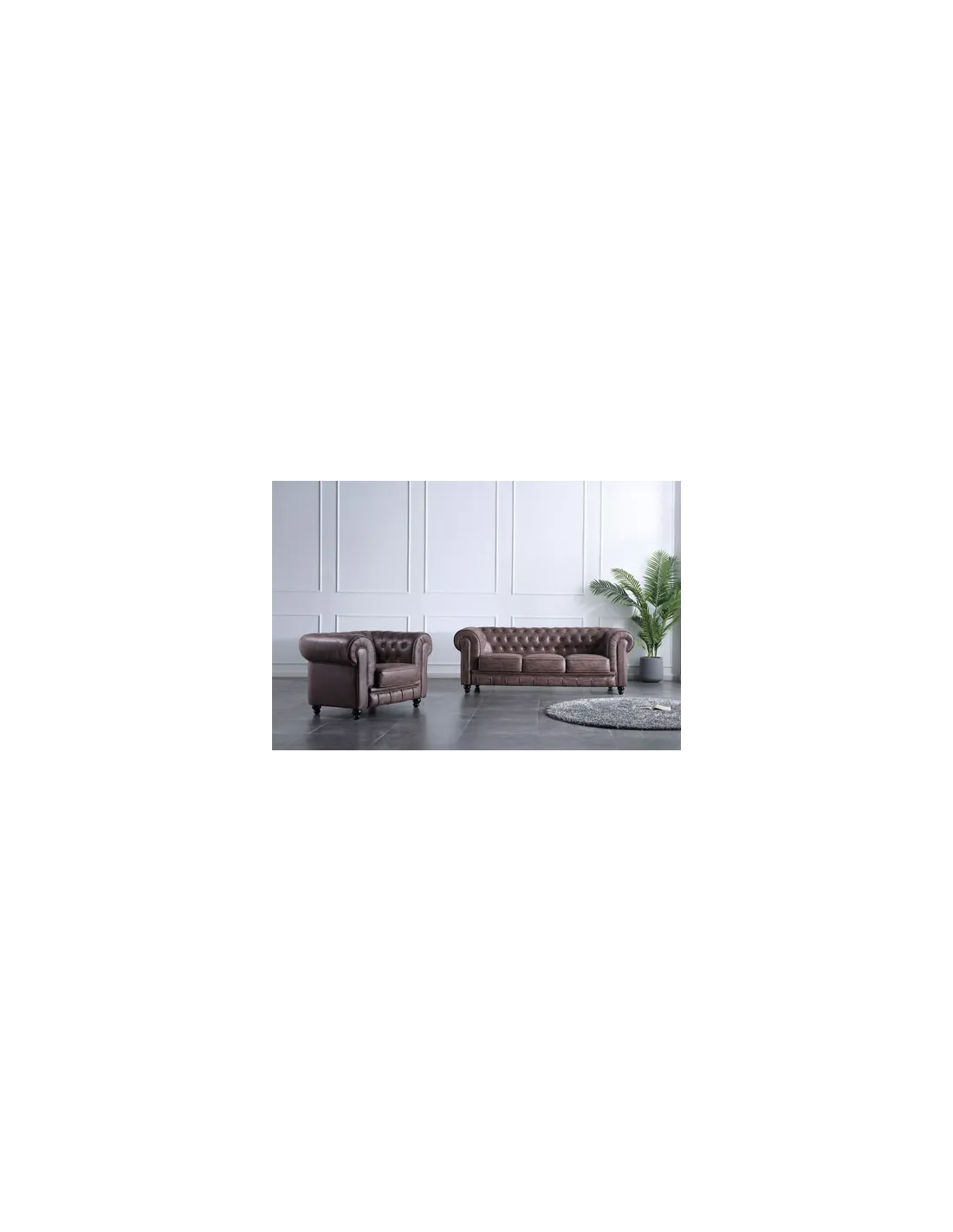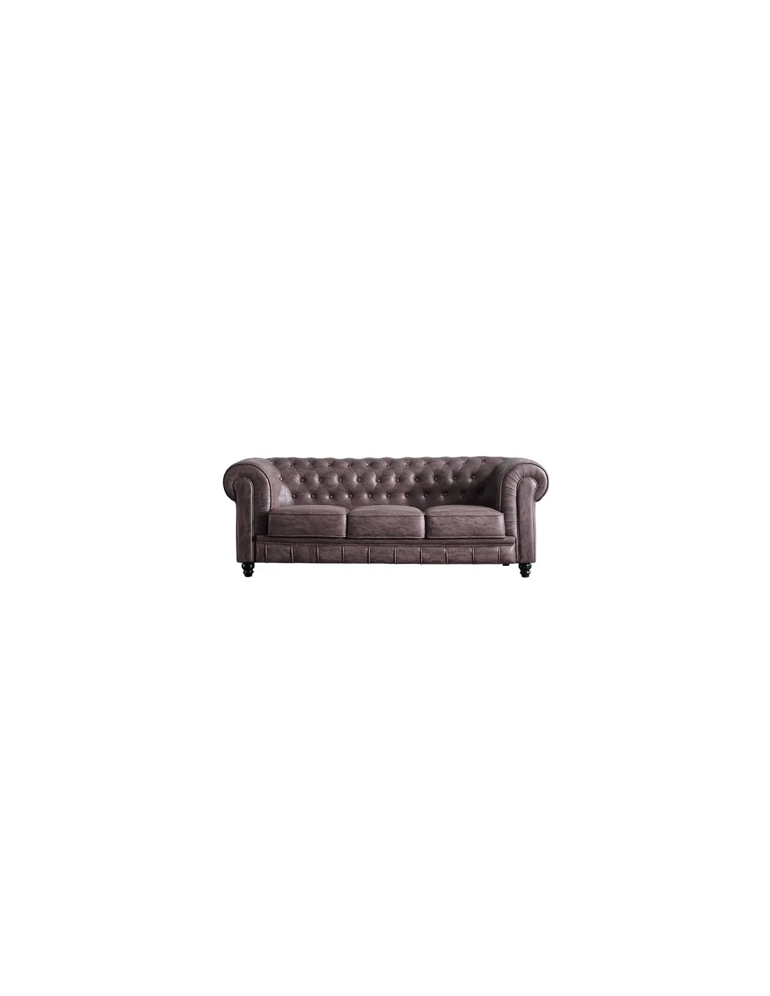 Sofá diseño clásico Chesterfield plazas Acabado capitoné con botones tapizados Tejido imitación cuero envejecido Medidas: 205 x 82 x 72 cm - Unidad venta : caja 1 Ud - Volumen : 1 245 M 3 x Ud Entradas previstas : 5 Ud(s) - 15/03 4 Ud(s) - 6 / 8 semanas Colores disponibles : Símil piel negro 7 Ud(s) - 15/03 Chocolate vintage En stock : 2 Uds Velvet verde En stock : 5 Uds 7 Ud(s) - 15/03