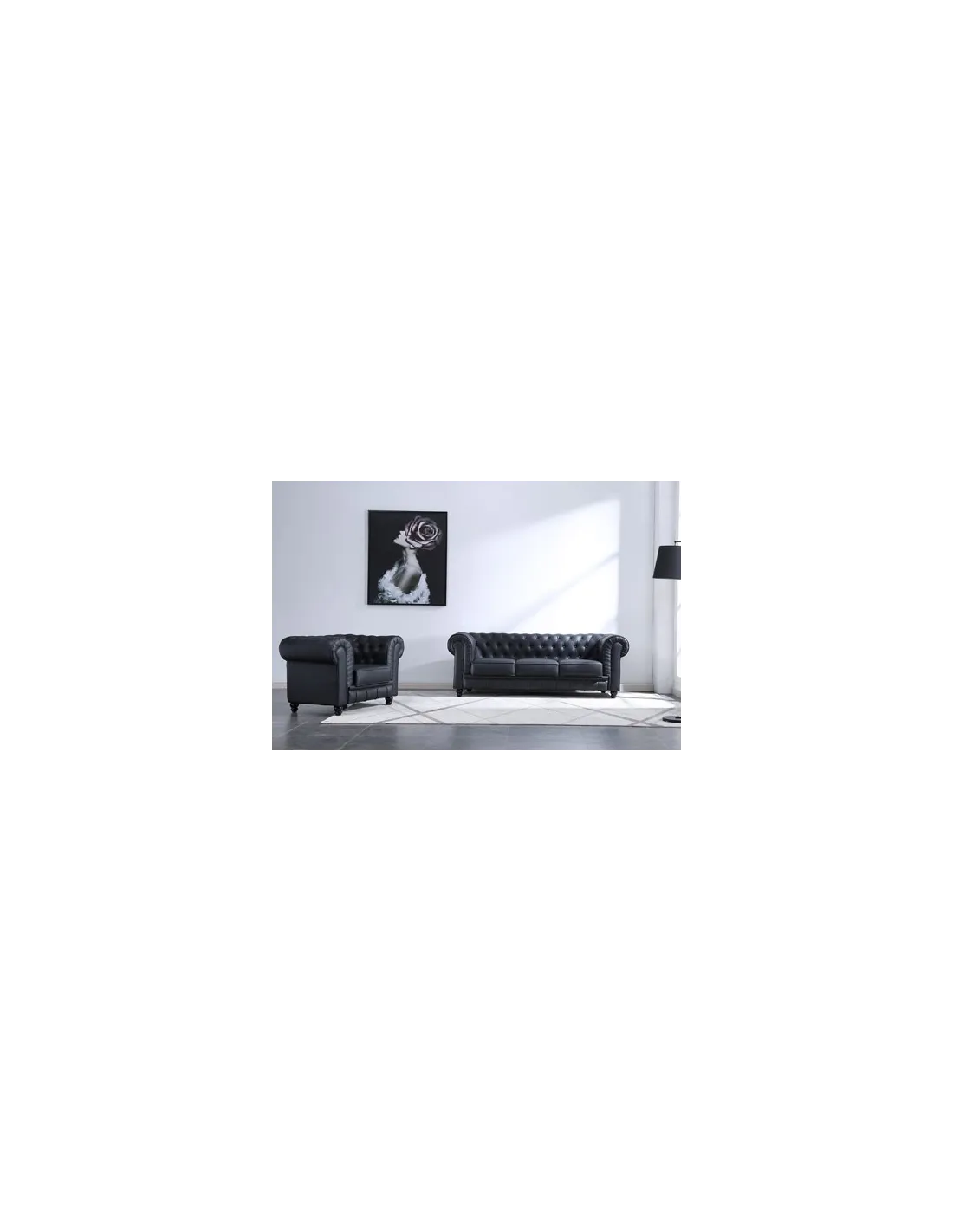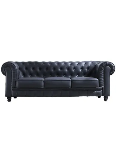 SOFÁ CHESTERFIELD 3 PLAZAS SÍMIL PIEL NEGRO