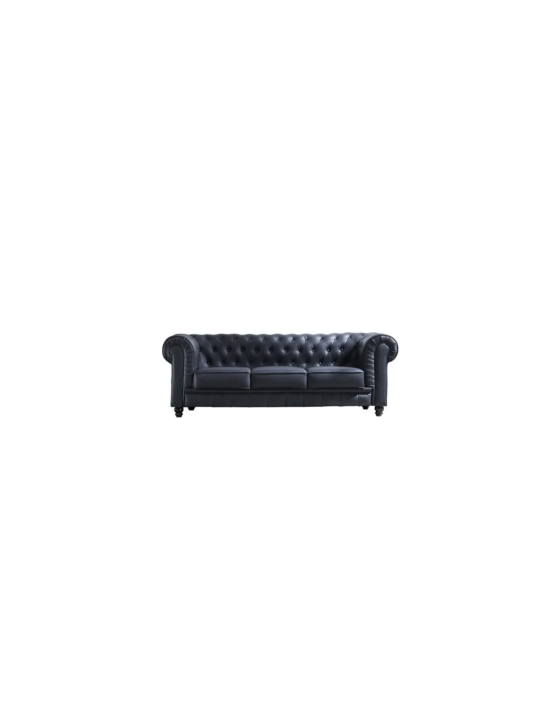 Sofá diseño clásico Chesterfield 3 plazas Acabado capitoné con botones tapizados Tejido símil piel Medidas: 205 x 82 x 72 cm - Unidad venta : caja 1 Ud - Volumen : 1 245 M 3 x Ud Entradas previstas : 7 Ud(s) - 15/03 4 Ud(s) - 6 / 8 semanas Colores disponibles : Símil piel negro 7 Ud(s) - 15/03 Chocolate vintage En stock : 2 Uds Velvet verde En stock : 5 Uds 7 Ud(s) - 15/03