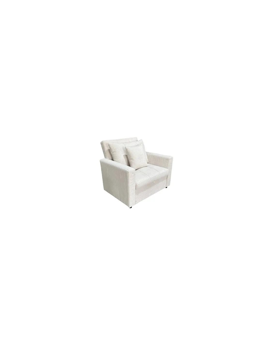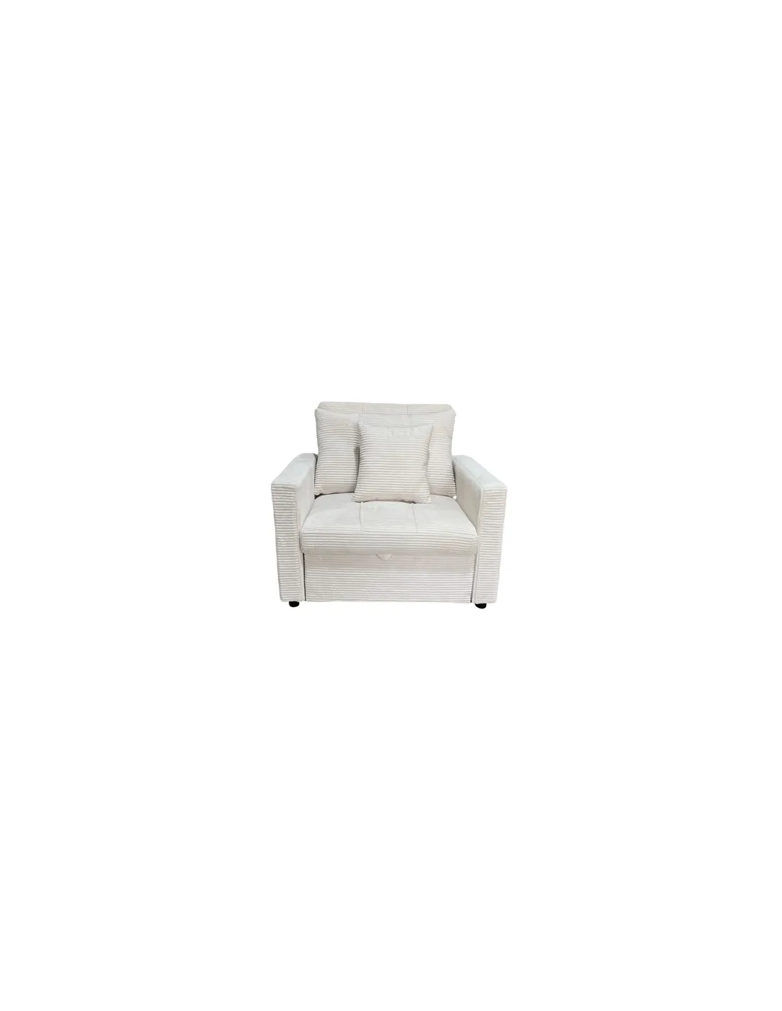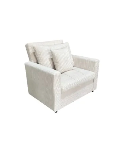 Sillón cama Diván tapizado Uso como sillon 1plaza, chaiselongue 1 plaza o cama Respaldo reclinable Reposapiés extensible Ideal como cama supletoria 80 x 197 cm Cojines respaldo / almohada incluidos Tejido corduroy crema Medidas : 99 x 99 x 88 cm / cama 80 x 197 x 47 cm - Unidad venta : caja 1 Ud - Volumen : 0 46 M 3 x Ud Entradas previstas : 39 Ud(s) - 22/03 Colores disponibles : Corduroy crema En stock : 20 Uds Corduroy gris En stock : 43 Uds En stock : 20 Uds