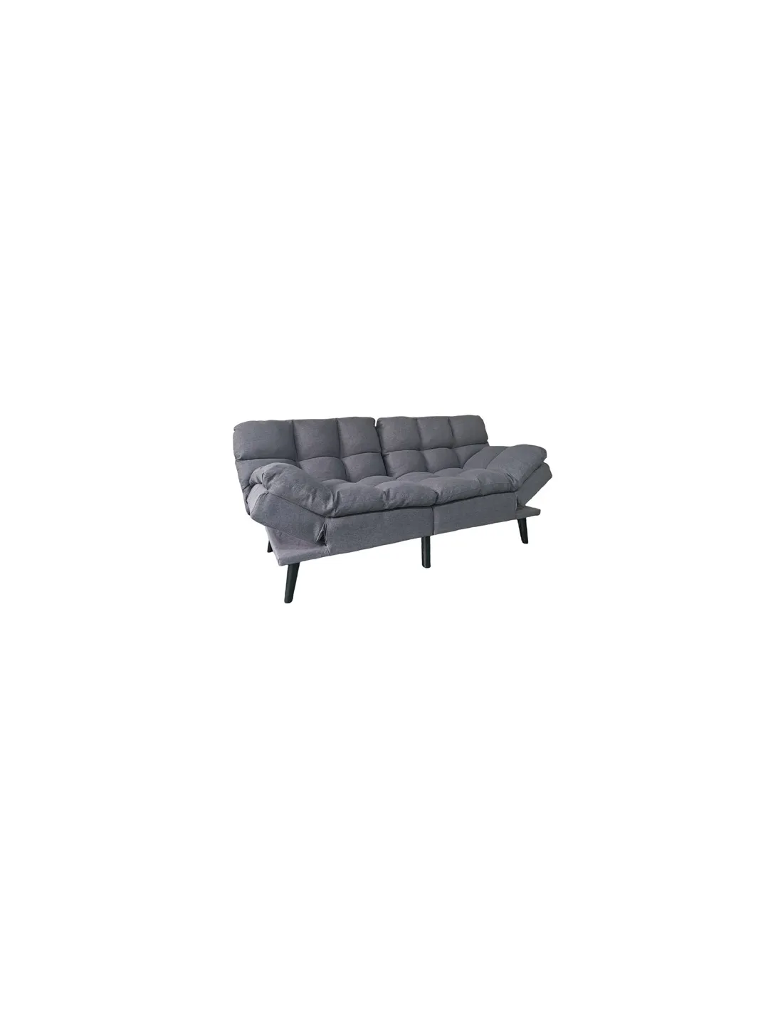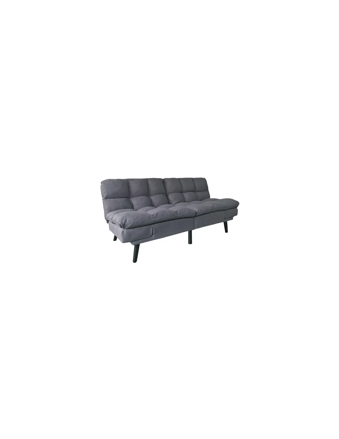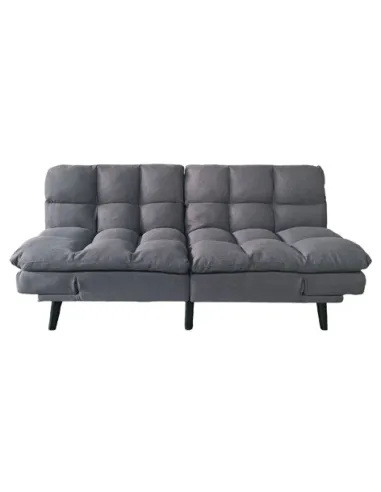 Sofá cama tapizado Mecanismo clic clac con apertura tipo libro en 2 mitades Apoyabrazos reclinables y regulables en altura Acolchado mullido soft confort Costuras decorativas Tejido gris Patas metálicas en color negro Medidas: 183 x 86,5 x 81 cm, cama 108 x 183 cm - Unidad venta : caja 1 Ud - Volumen : 0 551 M 3 x Ud Entradas previstas : Colores disponibles : Tejido mostaza En stock : 17 Uds Tejido gris En stock : 14 Uds En stock : 17 Uds