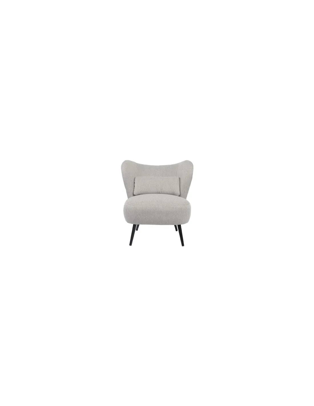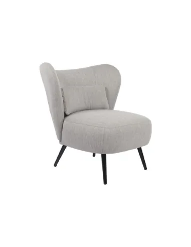 Butaca tapizada Respaldo circular Cojín lumbar incluido Tejido gris melange Patas metálicas en color negro Medidas: 73,5 x 78 x 76 cm - Unidad venta : caja 1 Ud - Volumen : 0 225 M 3 x Ud Entradas previstas : Colores disponibles : Linen blanco En stock : 3 Uds Gris melange En stock : 27 Uds En stock : 3 Uds