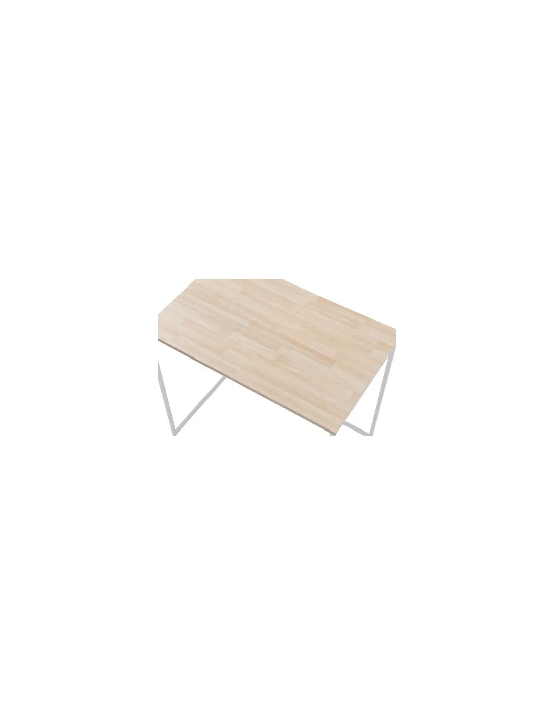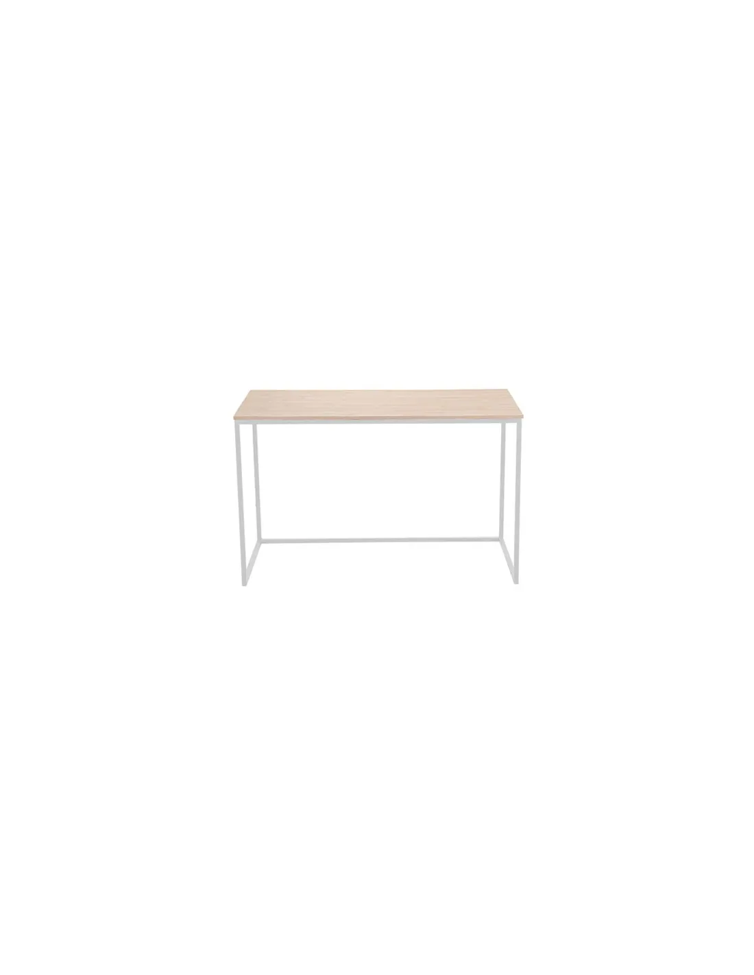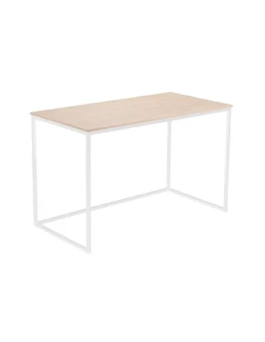Mesa estudio modelo Mia Tapa estratificado color roble Nordish Patas metálicas color blanco Medidas: 120 x 60 x 75 cm - Unidad venta : caja 1 Ud - Volumen : 0 0486 M 3 x Ud Entradas previstas :Pendiente reposición Colores disponibles : Roble nordish / negro En stock : 100 Uds Roble nordish / blanco Pendiente reposición En stock : 100 Uds