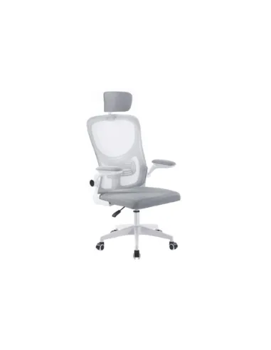 SILLON GIRATORIO CON REPOSACABEZAS AERO RED TRANSPIRABLE GRIS ESTRUCTURA BLANCA