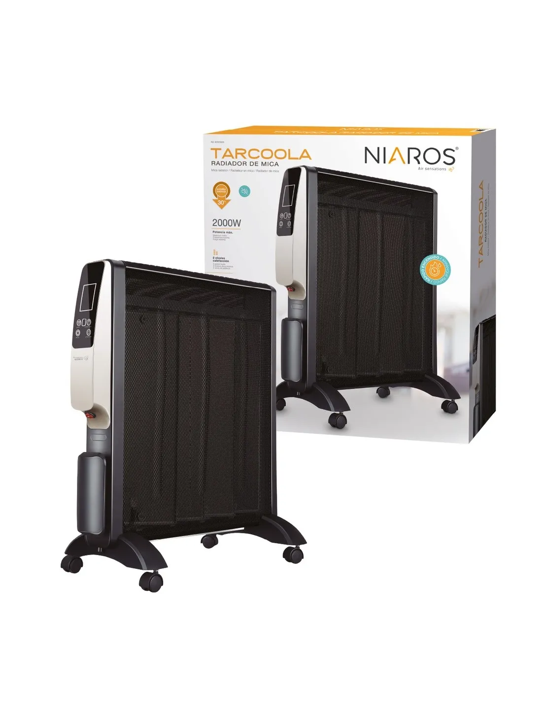 El radiador de mica Tarcoola combina potencia, diseño y comodidad en un solo equipo. Con 2000 W, mando a distancia y temporizador programable, es ideal para calentar estancias amplias de forma rápida, silenciosa y con un control total.