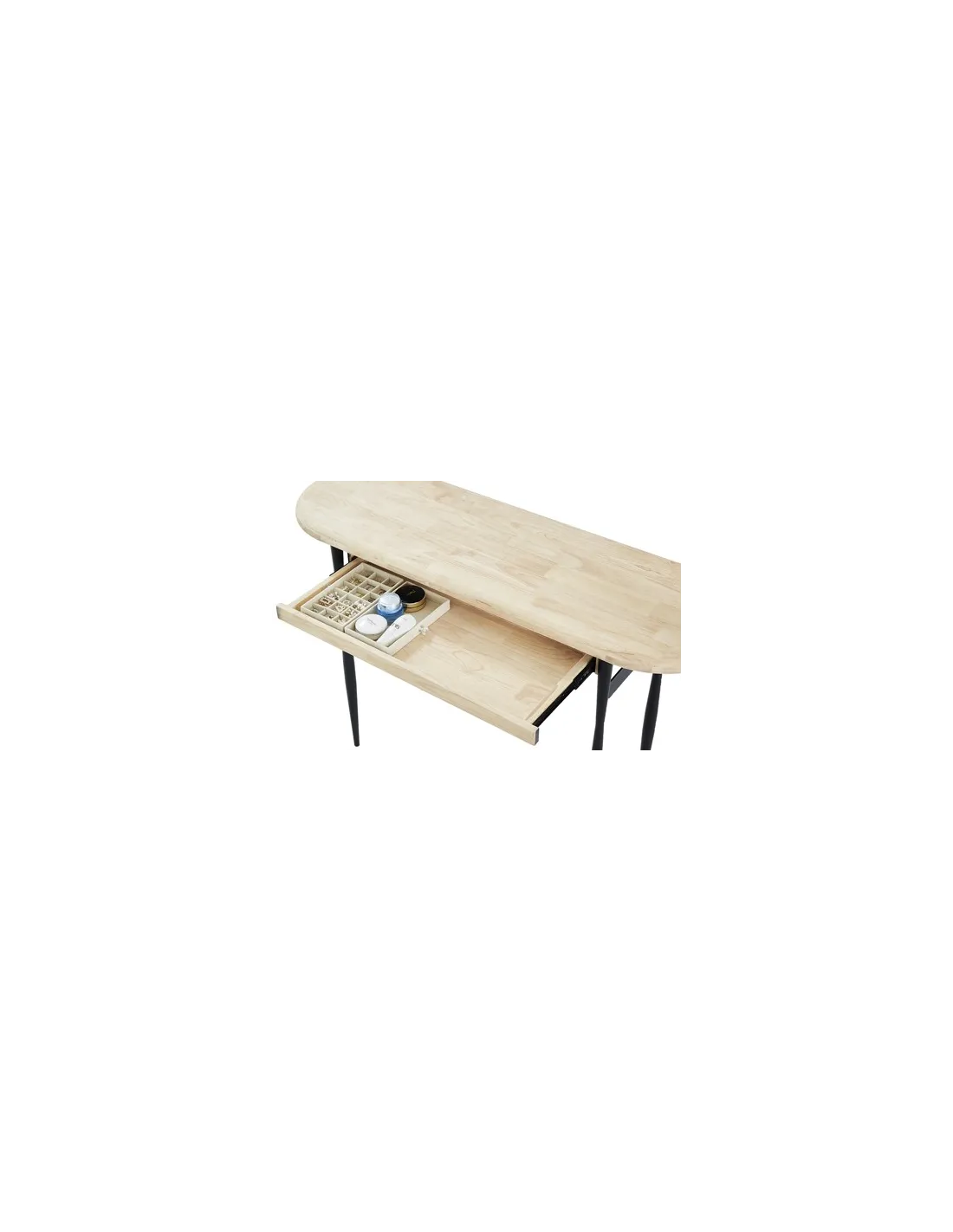 Tapa y cajón en madera de roble Espejo incluido con marco en madera de roble Bordes y esquinas redondeados 1 cajón Estructura metálica en color negro Medidas: 120 x 40 cm - Unidad venta : caja 1 Ud - Volumen : 0 096 M 3 x Ud Entradas previstas : Colores disponibles : Bordes redondeados Roble nordish / negro En stock : 27 Uds En stock : 27 Uds