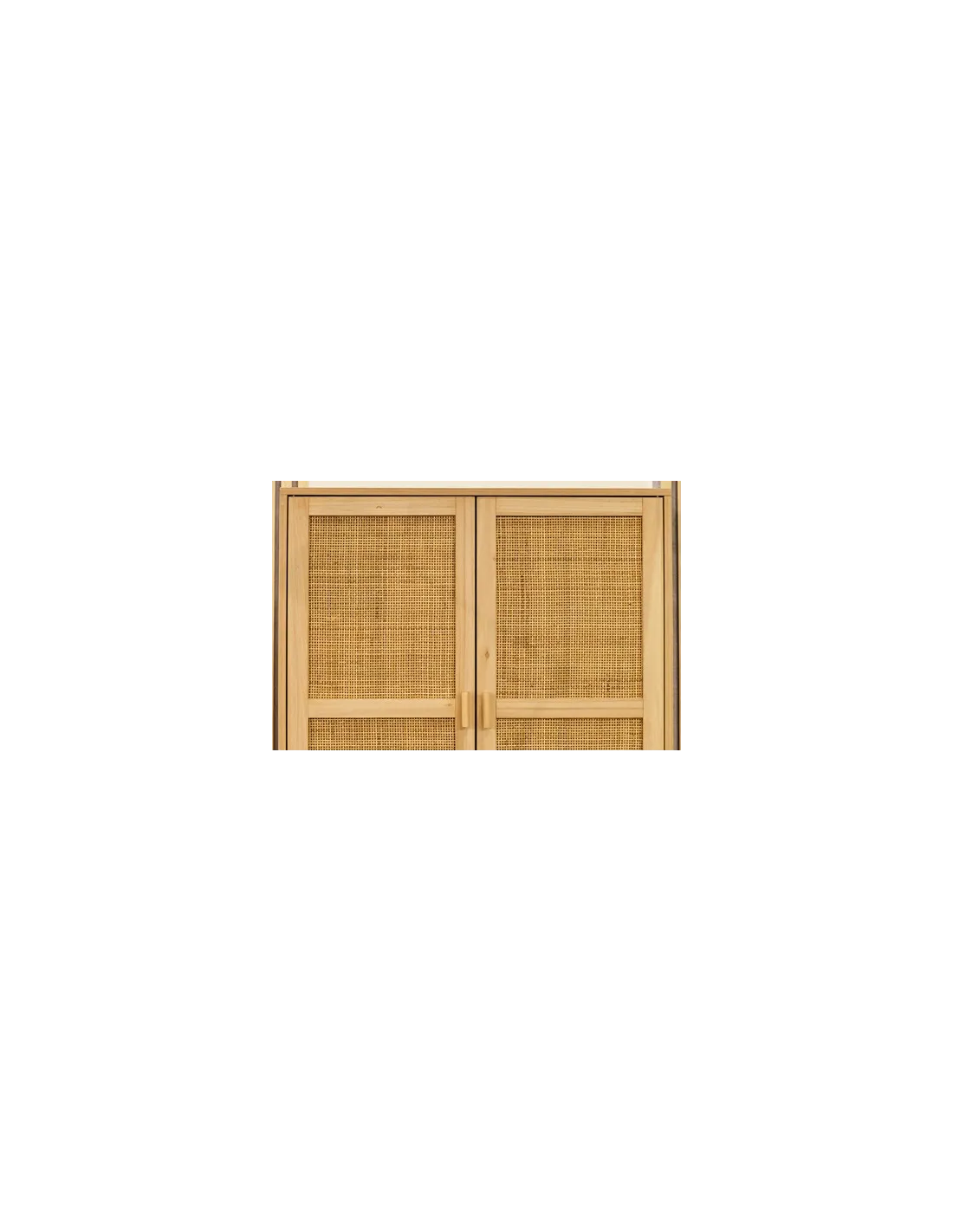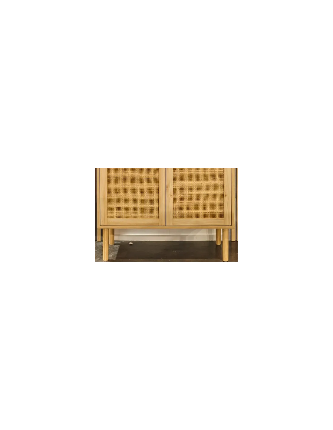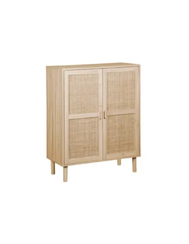 Armario bajo para almacenaje 2 puertas con paneles decorativos en rattán Balda interior divisoria Melamina color pino Patas en madera de pino Medidas: 80 x 40 x 110 cm - Unidad venta : caja 1 Ud - Volumen : 0 052 M 3 x Ud Entradas previstas : Colores disponibles : Pino / Rattan En stock : 254 Uds En stock : 254 Uds
