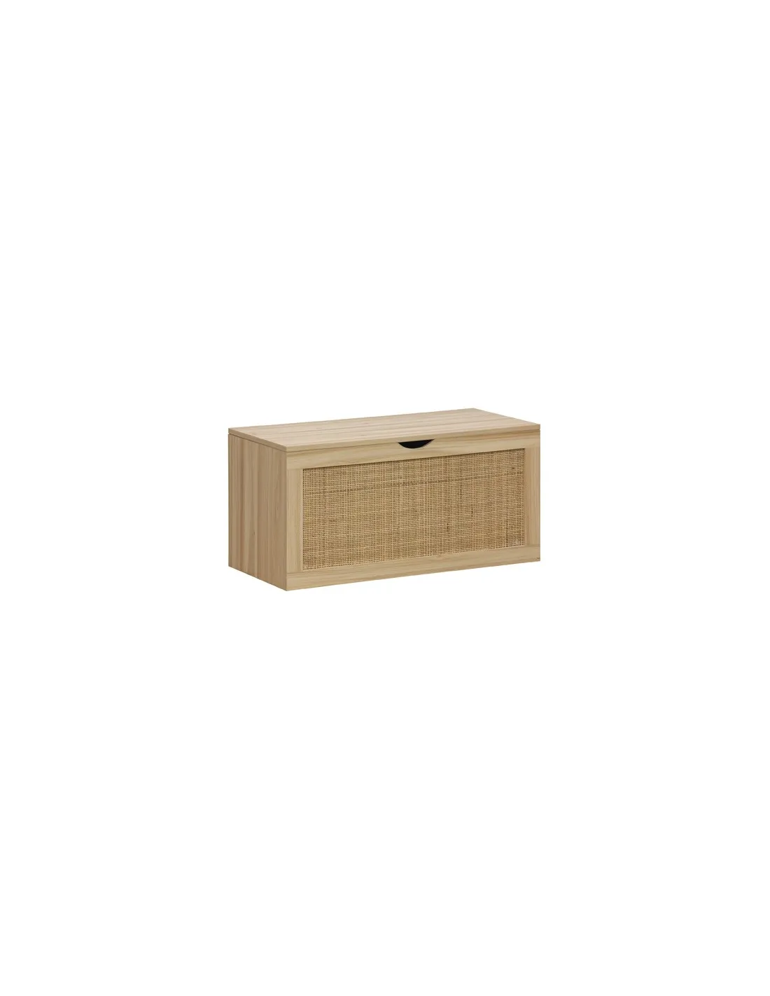 Baúl almacenaje Apertura superior Papel laminado pino Frente decorativo en rattán Medidas: 80 x 40 x 40 cm - Unidad venta : caja 1 Ud - Volumen : 0 04452 M 3 x Ud Entradas previstas : Colores disponibles : Pino / Rattan En stock : 141 Uds En stock : 141 Uds