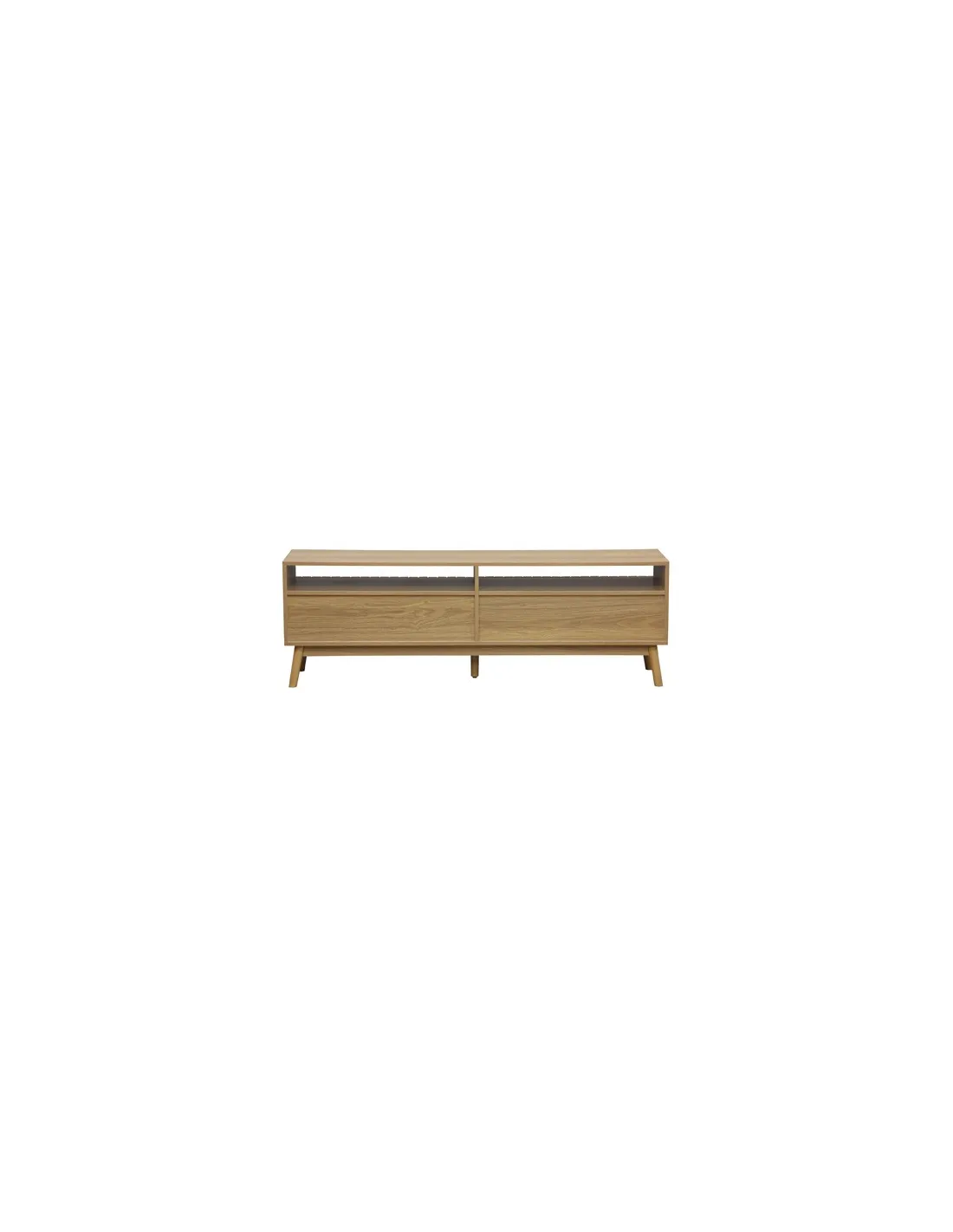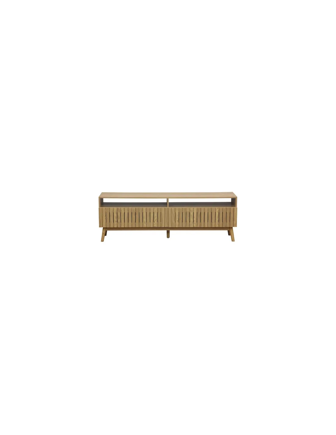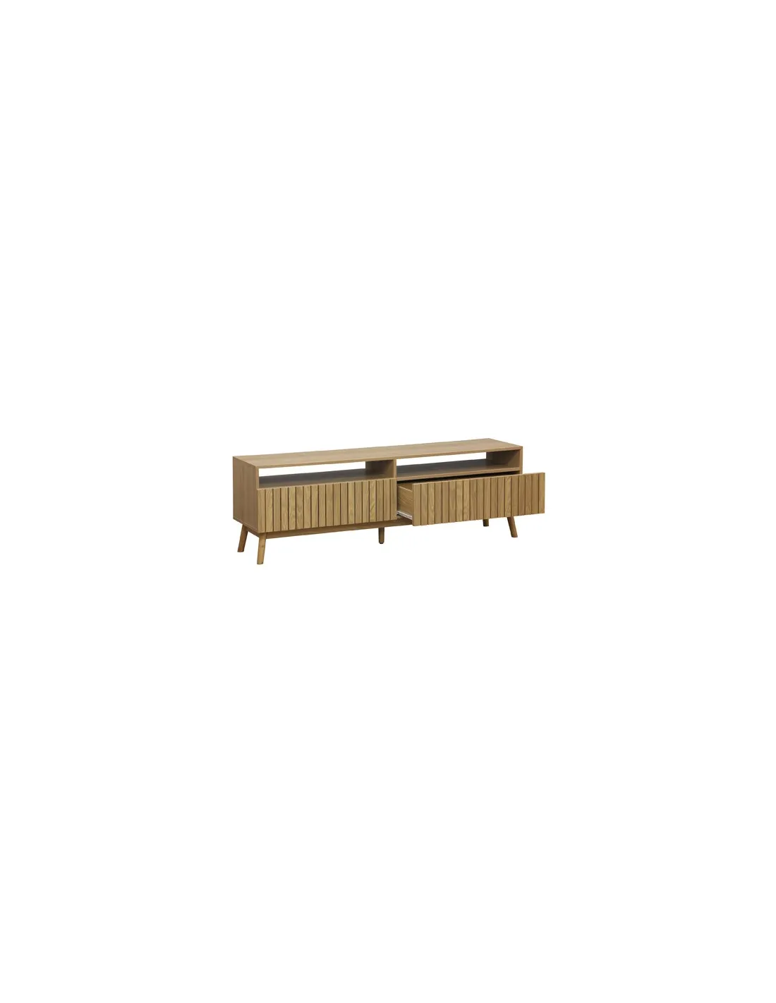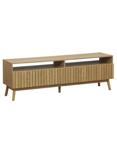 Mueble TV con 2 cajones de gran capacidad Papel laminado / chapa fresno Frentes cajónes en alistonado decorativo Guias metálicas Patas en madera Medidas: 150 x 40 x 50 cm - Unidad venta : caja 1 Ud - Volumen : 0 1 M 3 x Ud Entradas previstas : Colores disponibles : Fresno En stock : 10 Uds En stock : 10 Uds