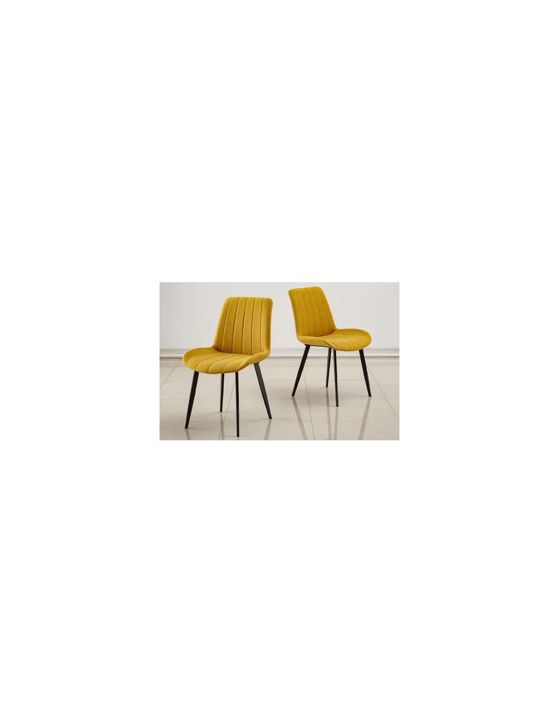 Silla comedor tapizada Costuras decorativas líneas verticales Estructura patas soldada en 1 pieza color negro Tejido mostaza Medidas : 51,5 x 59 x 83 cm - Unidad venta : caja 4 Uds - Volumen : 0 0515 M 3 x Ud Entradas previstas : 32 Ud(s) - 15/03 20 Ud(s) - 10 / 12 semanas Colores disponibles : Tejido gris 64 Ud(s) - 15/03 Tejido beige 76 Ud(s) - 15/03 Tejido mostaza 32 Ud(s) - 15/03 64 Ud(s) - 15/03