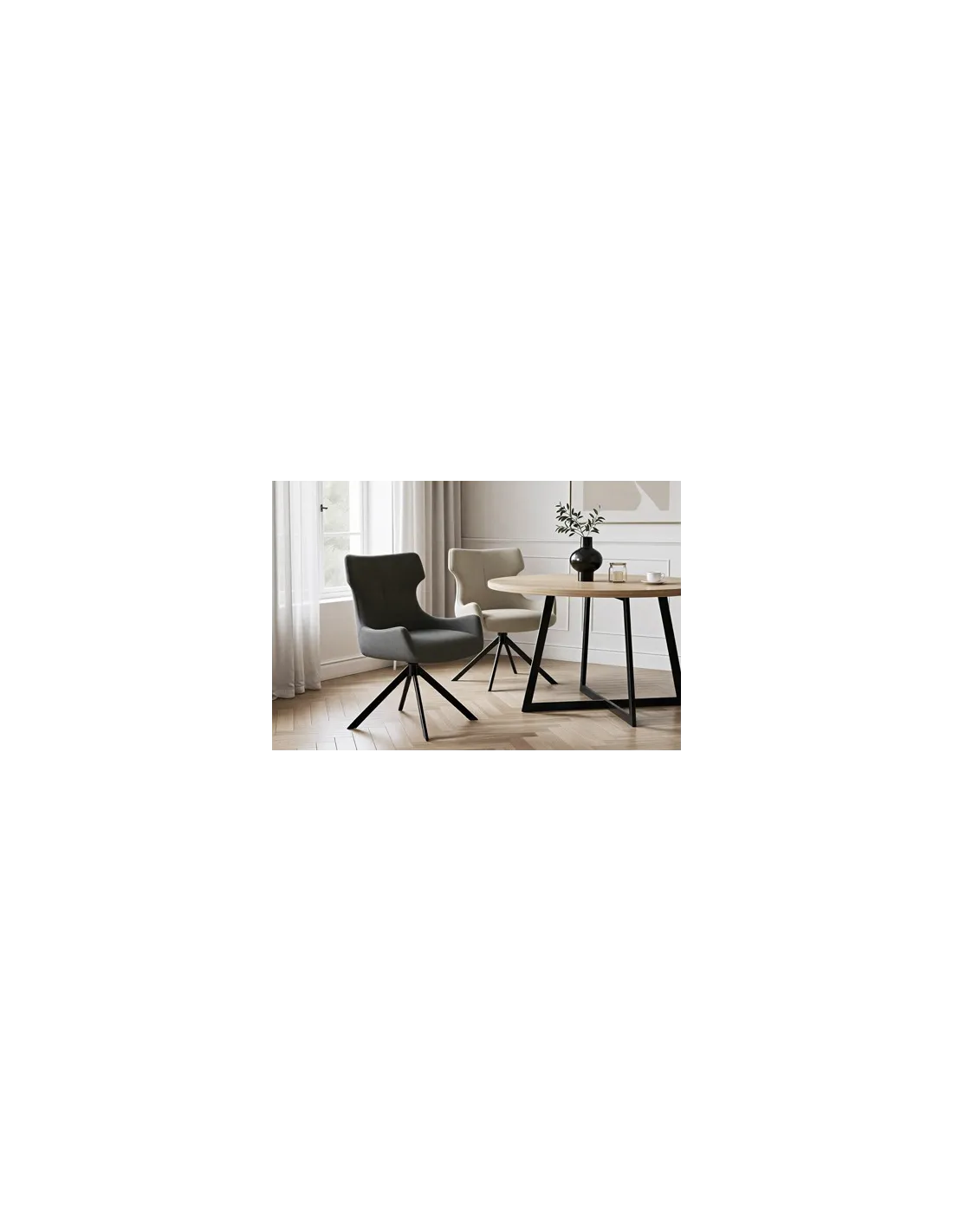 Silla de comedor tapizada en tejido Respaldo curvado tipo orejero para mayor apoyo lumbar Costuras decorativas Brazos integrados Patas metálicas en forma de piramide color negro Espuma de alta densidad Tejido gris suave al tacto y fácil de limpiar Medidas : 60 x 61 x 88 cm - Unidad venta : caja 2 Uds - Volumen : 0 124 M 3 x Ud Entradas previstas : 76 Ud(s) - 09/03 Colores disponibles : Tejido gris 76 Ud(s) - 09/03 Tejido beige 68 Ud(s) - 09/03 76 Ud(s) - 09/03