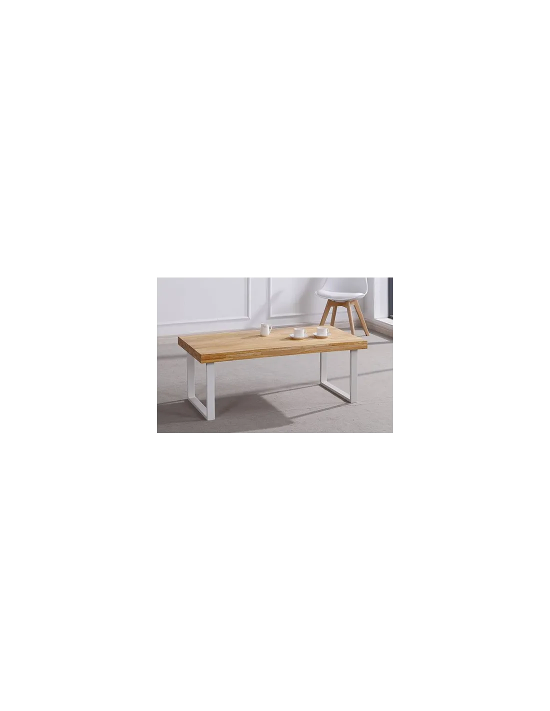 Mesa centro Natural Tapa madera color roble nordish 54 mm Patas metálicas color blanco Medidas: 120 x 60 x 43,5 cm - Unidad venta : caja 1 Ud - Volumen : 0 065 M 3 x Ud Entradas previstas : Colores disponibles : Roble nordish / negro En stock : 7 Uds Roble nordish / blanco En stock : 24 Uds En stock : 7 Uds