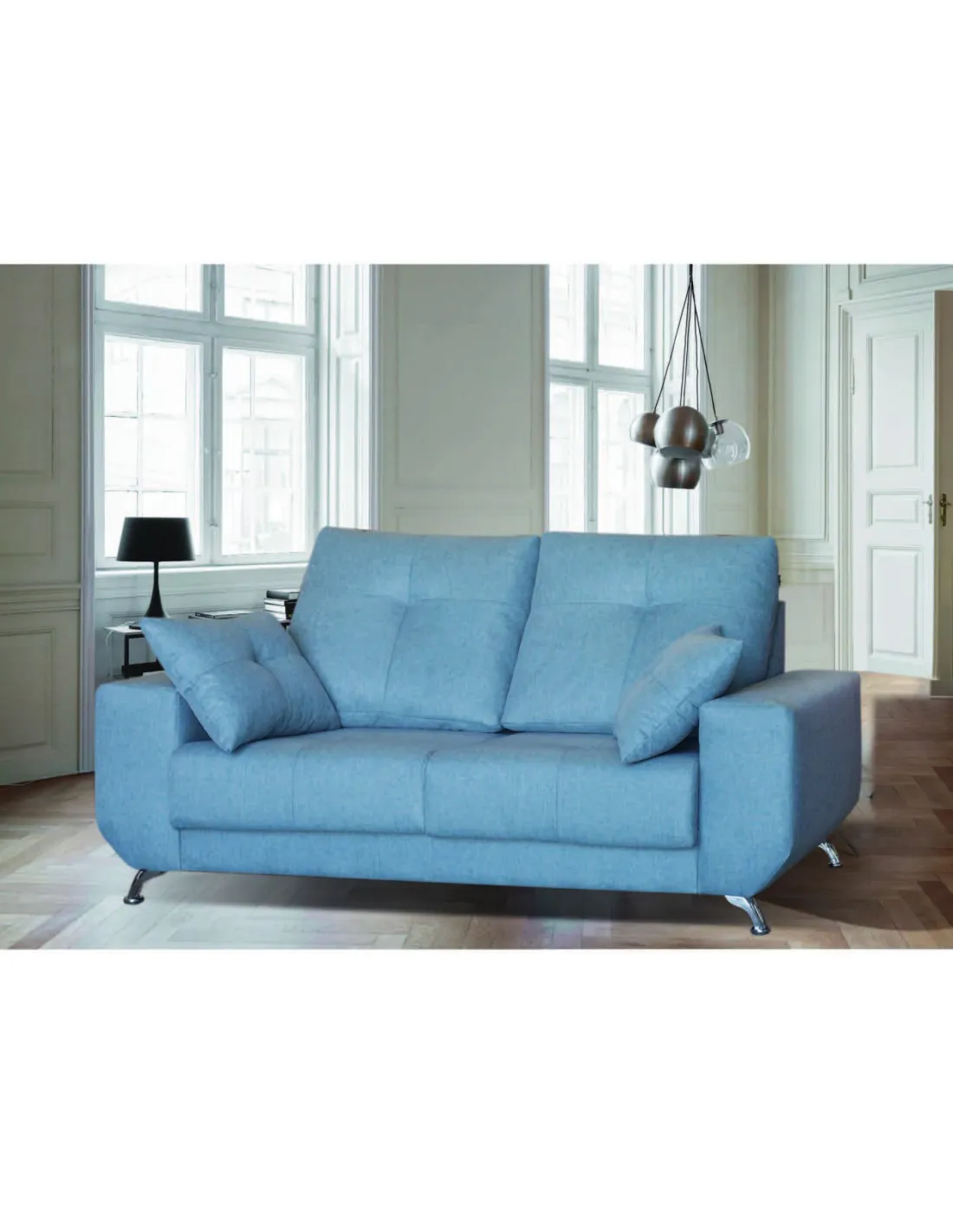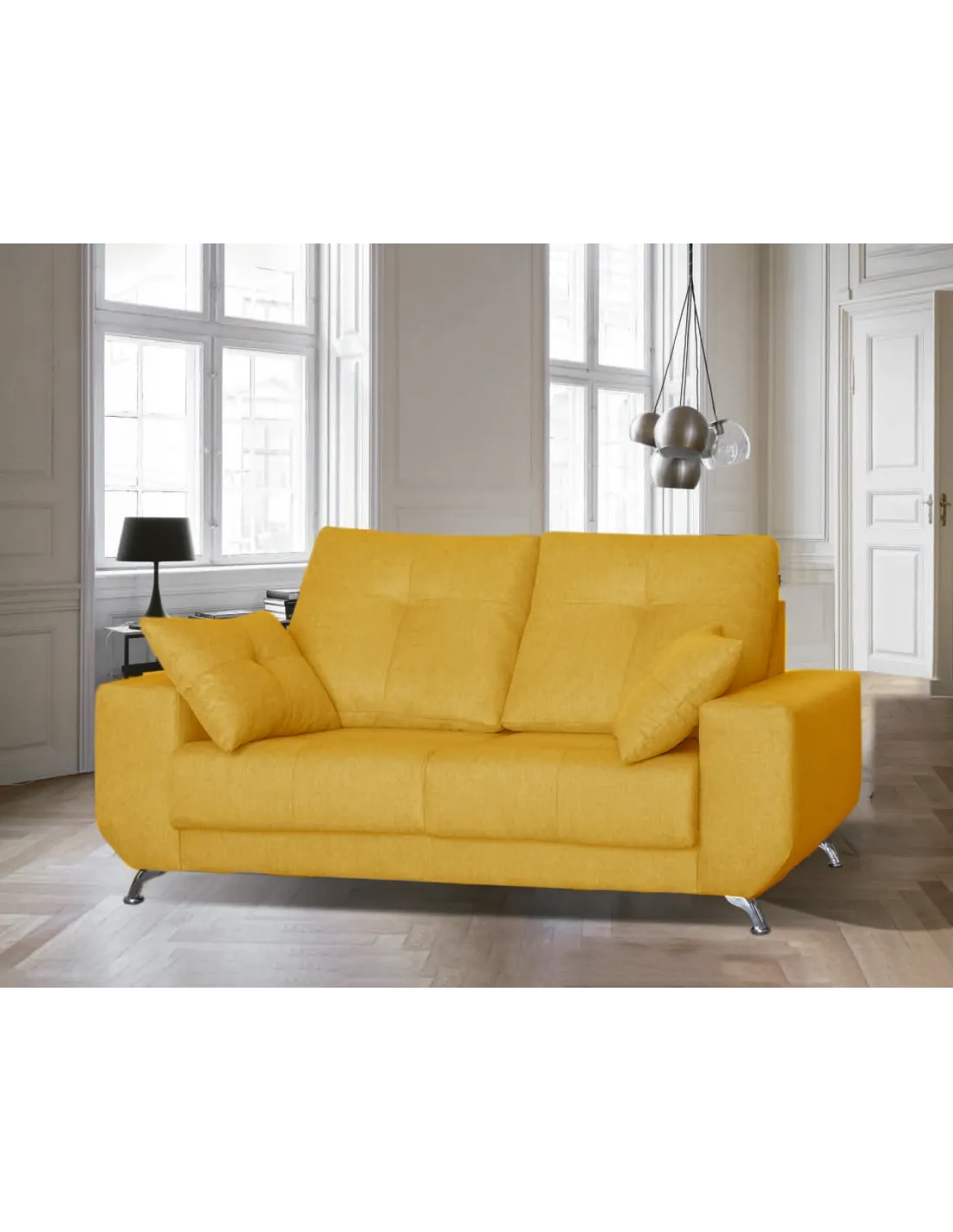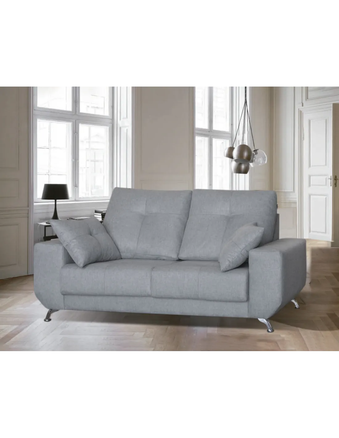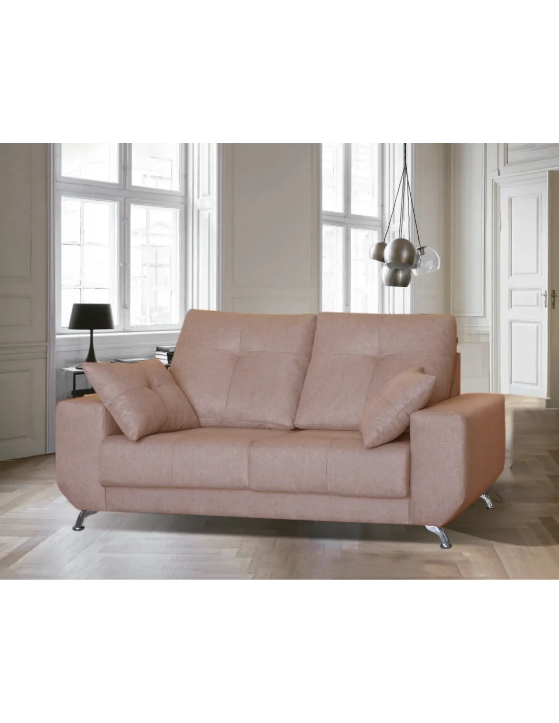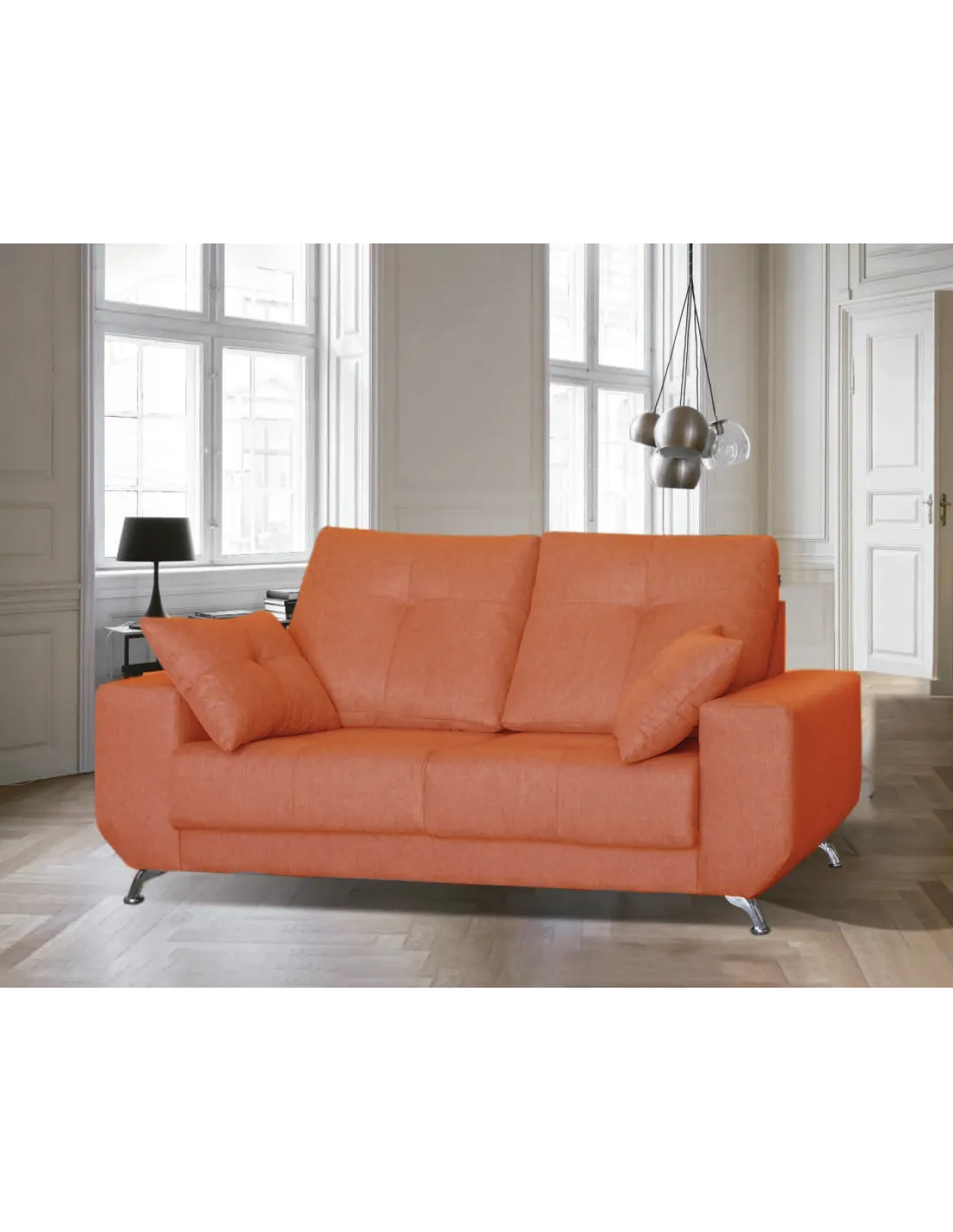 Modelo de estilo nórdico con pata alta de diseño en color cromada. Respaldos rectos y brazos sin cojín descanso para ofrecer un diseño increíble.