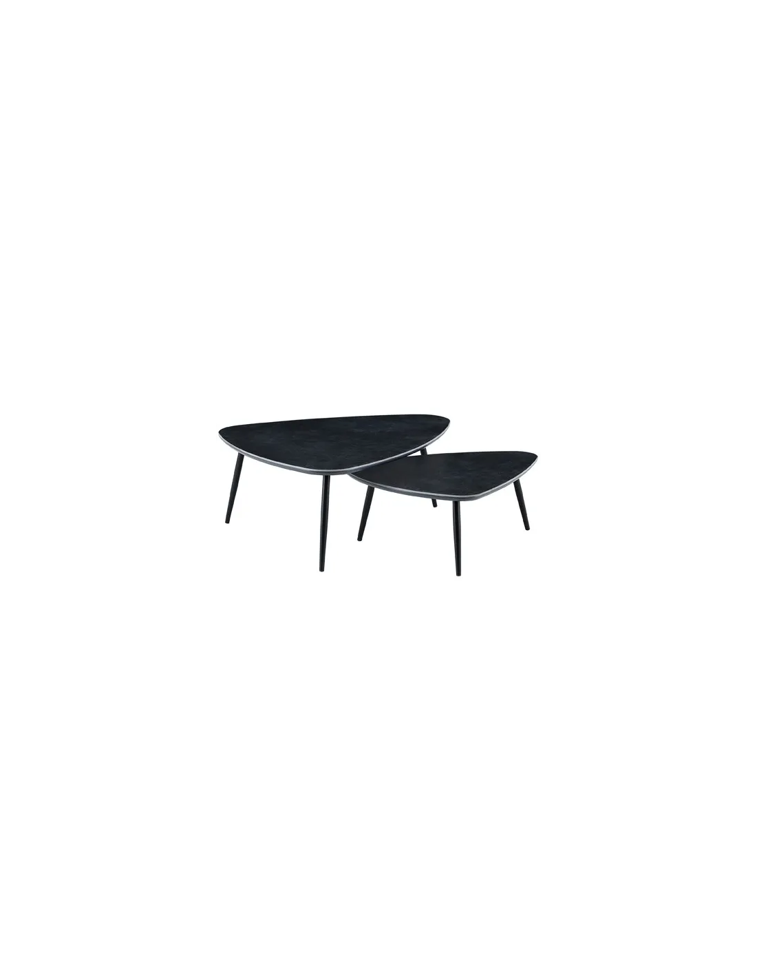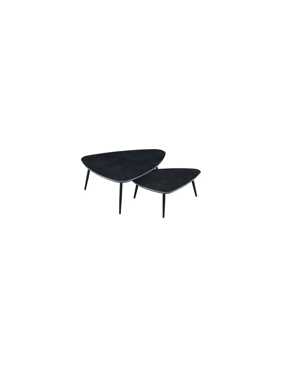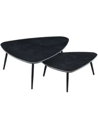 Juego de 2 mesas de centro nido Tapas con acabado superior cerámico en color negro Patas metálicas en color negro Medidas : ( an x prof x al ) : 97 x 79 x 35 cm / 74 x 50 x 29 cm - Unidad venta : caja 1 Ud - Volumen : 0 115 M 3 x Ud Entradas previstas : 30 Ud(s) - 30/04 Colores disponibles : Ceramic blanco / negro 16 Ud(s) - 30/04 Ceramic negro / negro 30 Ud(s) - 30/04 16 Ud(s) - 30/04