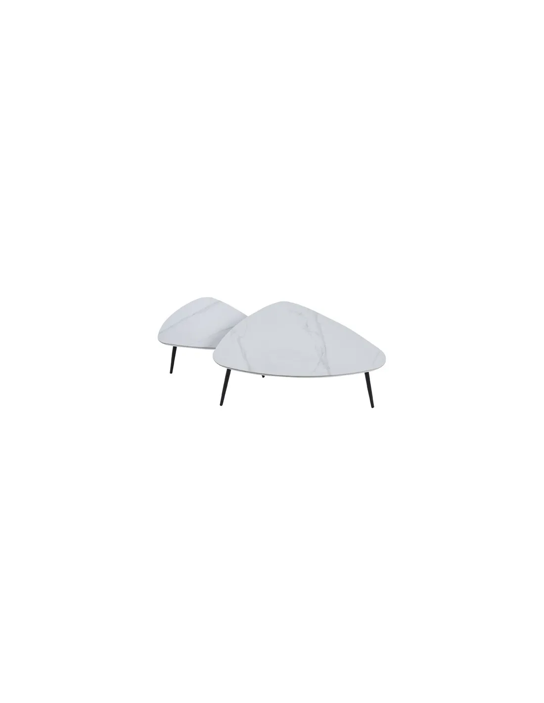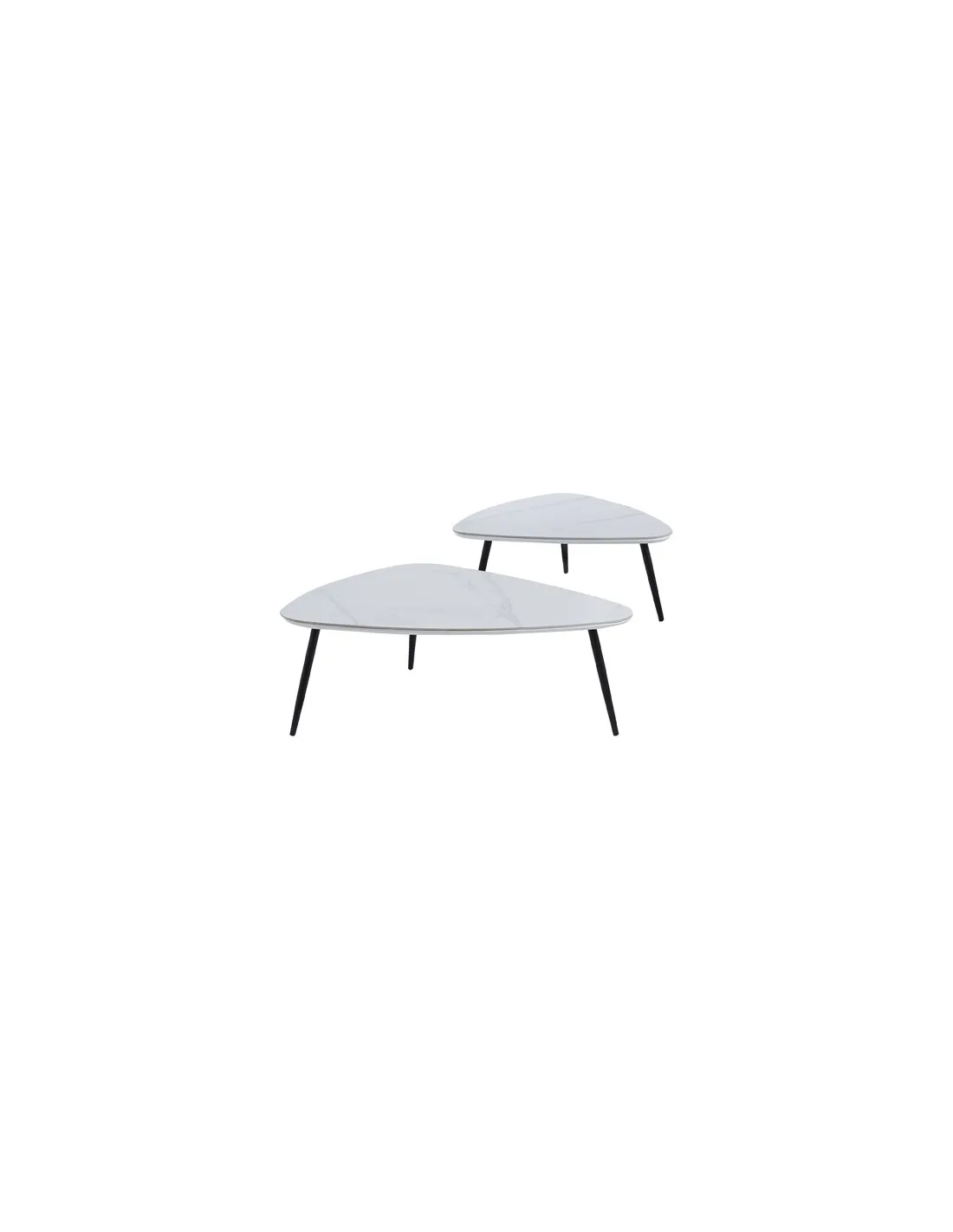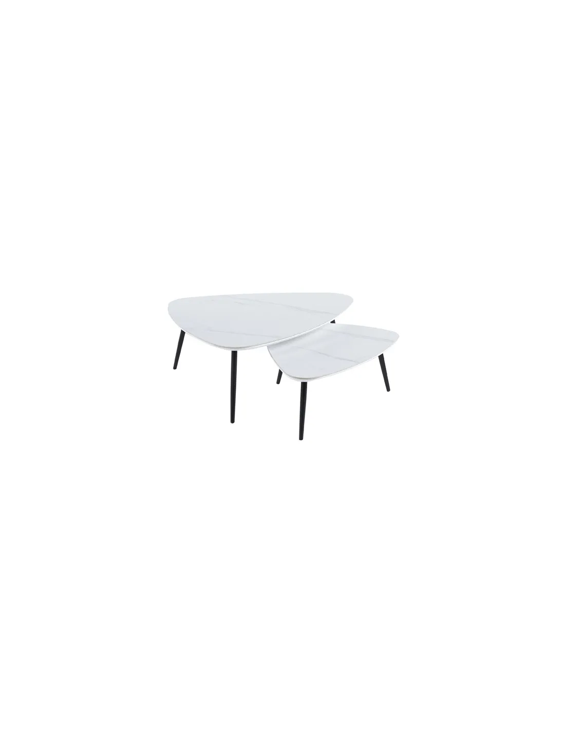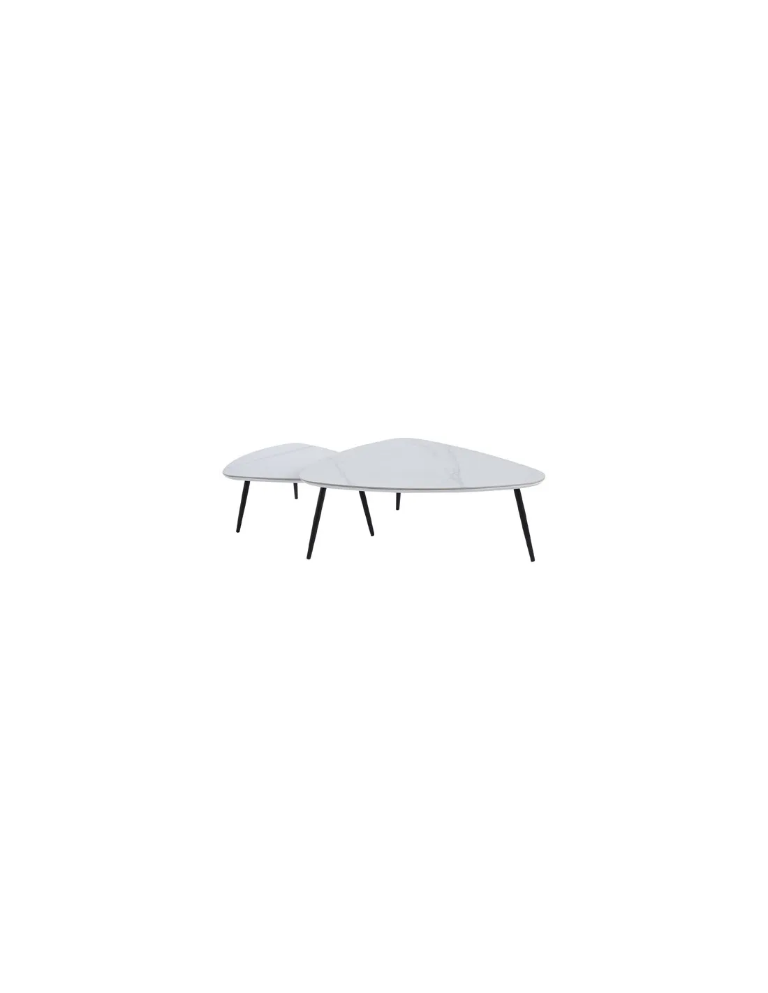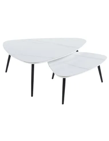 Juego de 2 mesas de centro nido Tapas con acabado superior cerámico en color blanco Patas metálicas en color negro Medidas : ( an x prof x al ) : 97 x 79 x 35 cm / 74 x 50 x 29 cm - Unidad venta : caja 1 Ud - Volumen : 0 167 M 3 x Ud Entradas previstas : 16 Ud(s) - 30/04 Colores disponibles : Ceramic blanco / negro 16 Ud(s) - 30/04 Ceramic negro / negro 30 Ud(s) - 30/04 16 Ud(s) - 30/04