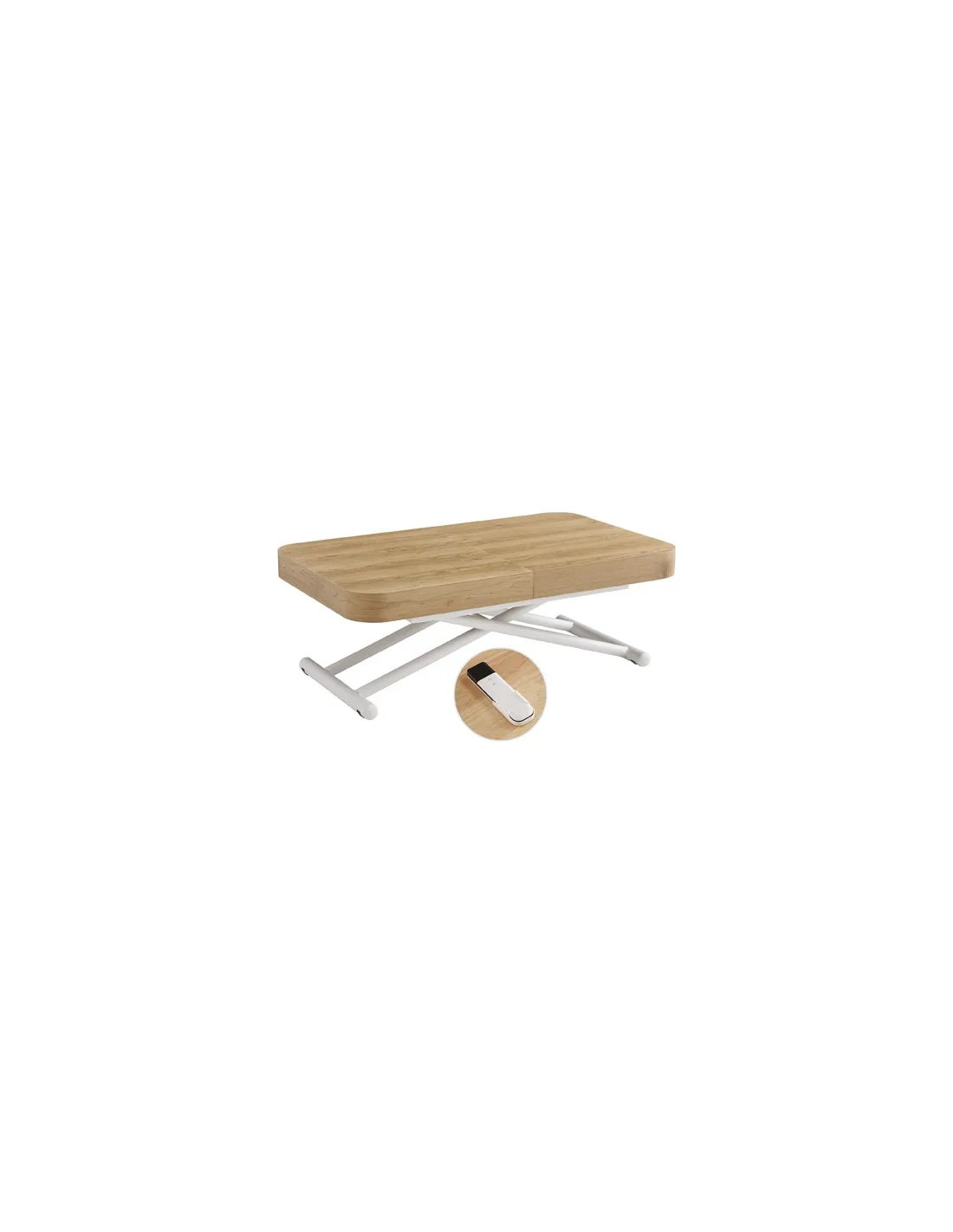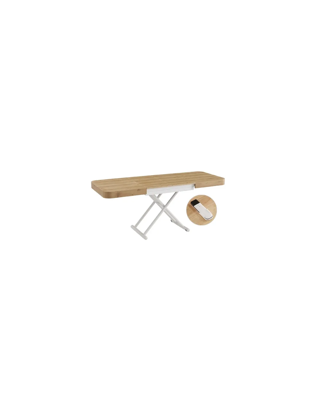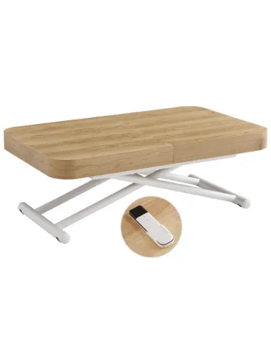 MESA CENTRO EXTENSIBLE 120 - 160 - 200 CM CON ELEVACION ELECTRICA TURIN OAK / BLANCO