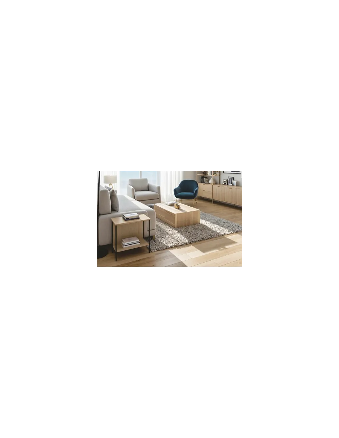 Mesa rincón / sofá con estante inferior Tapa y estante en melamina color roble Estructura metálica color negro Medidas : 40 x 18 x 48 cm - Unidad venta : caja 1 Ud - Volumen : 0 01 M 3 x Ud Entradas previstas : 187 Ud(s) - 08/03 Colores disponibles : Oak / Negro 187 Ud(s) - 08/03 187 Ud(s) - 08/03