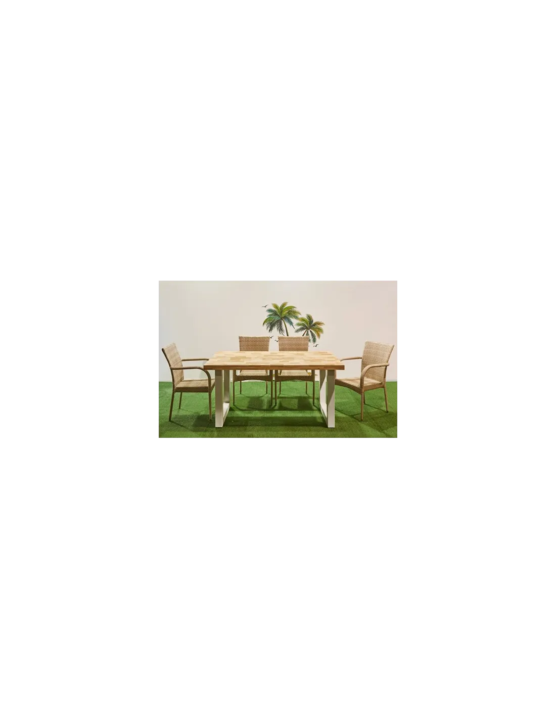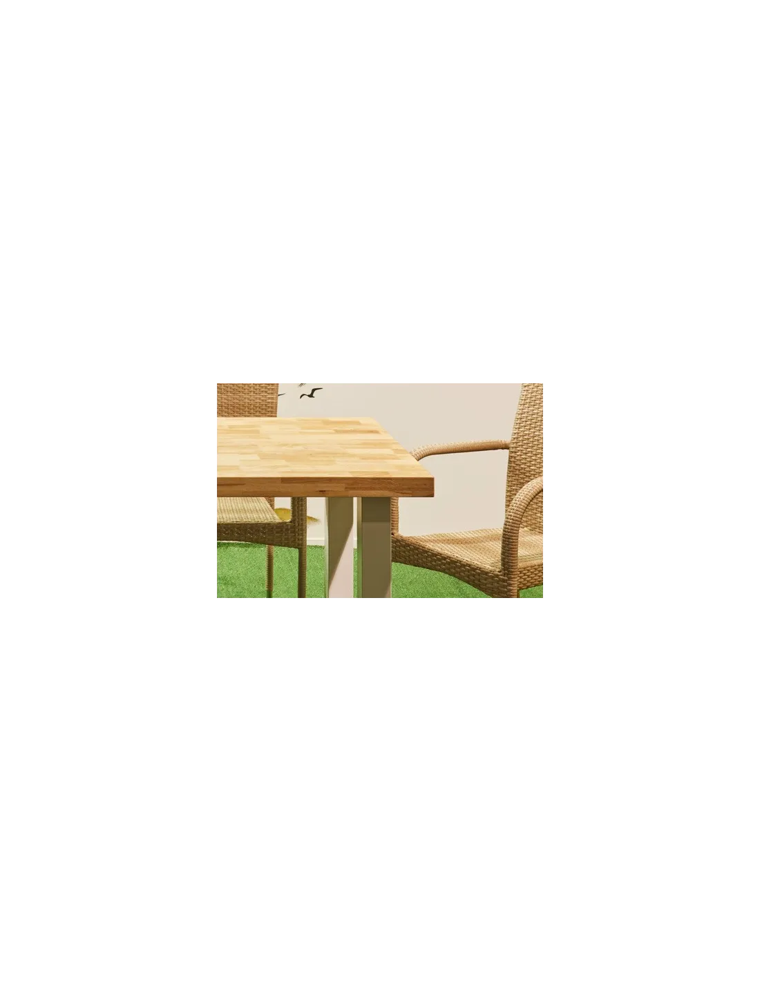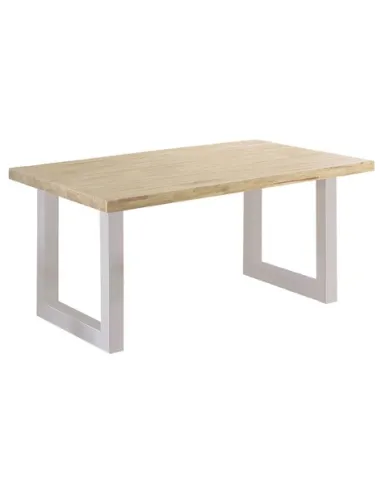 Mesa de terraza para uso interior / exterior Tapa en madera de roble con tratamiento antihumedad y protección UV Patas metálicas color blanco mate Topes de suelo niveladores Medidas: 160 x 90 x 76 cm - Unidad venta : caja 1 Ud - Volumen : 0 166 M 3 x Ud Entradas previstas : 3 Ud(s) - 15/03 Colores disponibles : Roble nordish / blanco 3 Ud(s) - 15/03 3 Ud(s) - 15/03