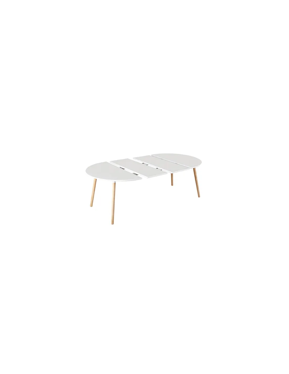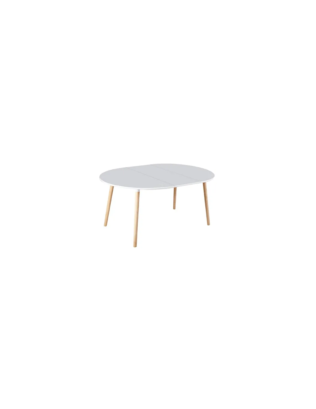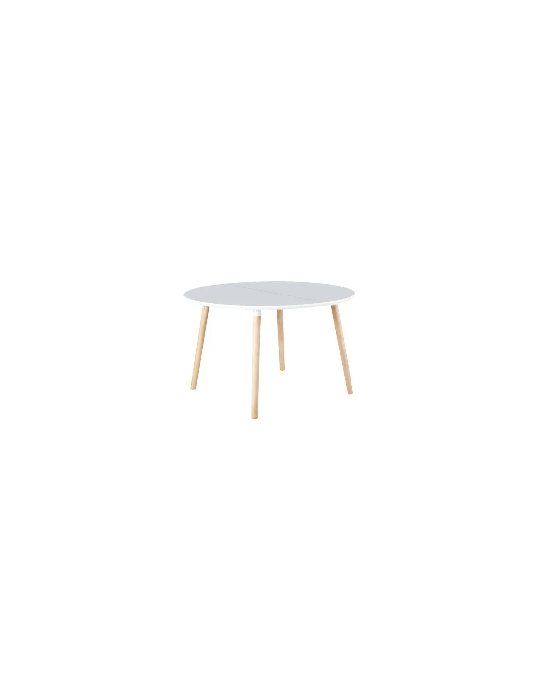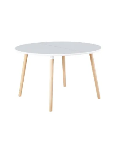 Mesa comedor redonda extensible Nordika Tapa DM lacado mate color blanco Patas madera color haya Extensible 140 -180 cm Medidas: 100 - 140 - 180 x 100 x 75 cm - Unidad venta : caja 1 Ud - Volumen : 0 16 M 3 x Ud Entradas previstas : 40 Ud(s) - 29/03 20 Ud(s) - 10 / 12 semanas Colores disponibles : Blanco / Madera En stock : 3 Uds En stock : 3 Uds