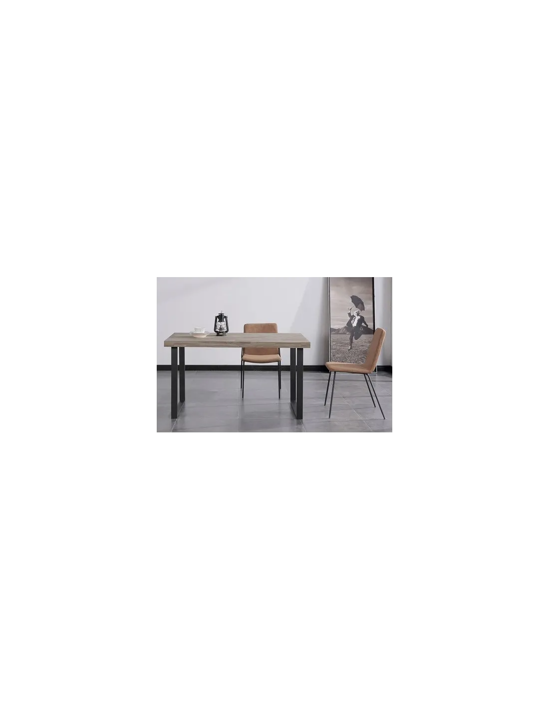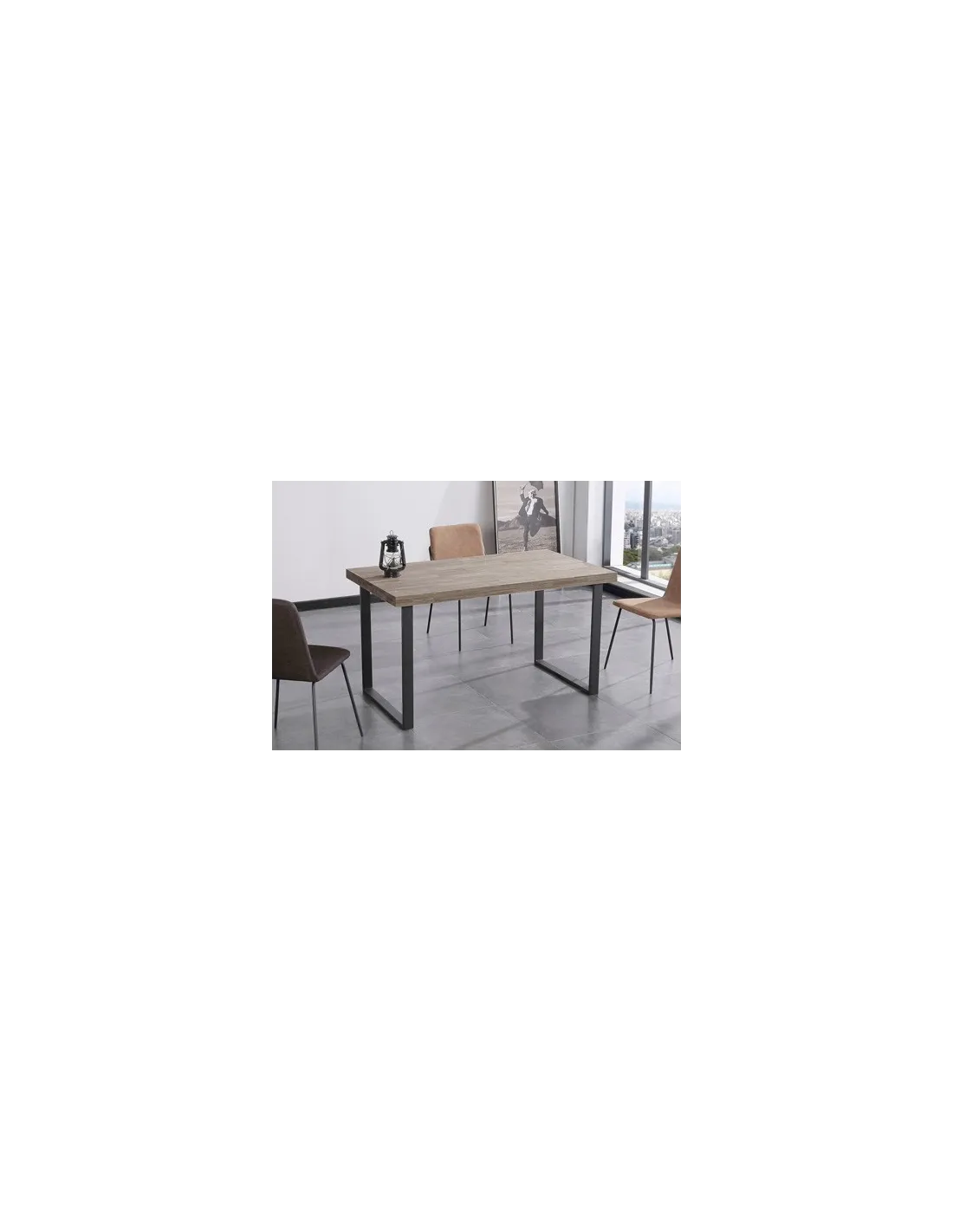 MESA COMEDOR FIJA NATURAL 140 x 80 CM ROBLE AMERICAN / NEGRO