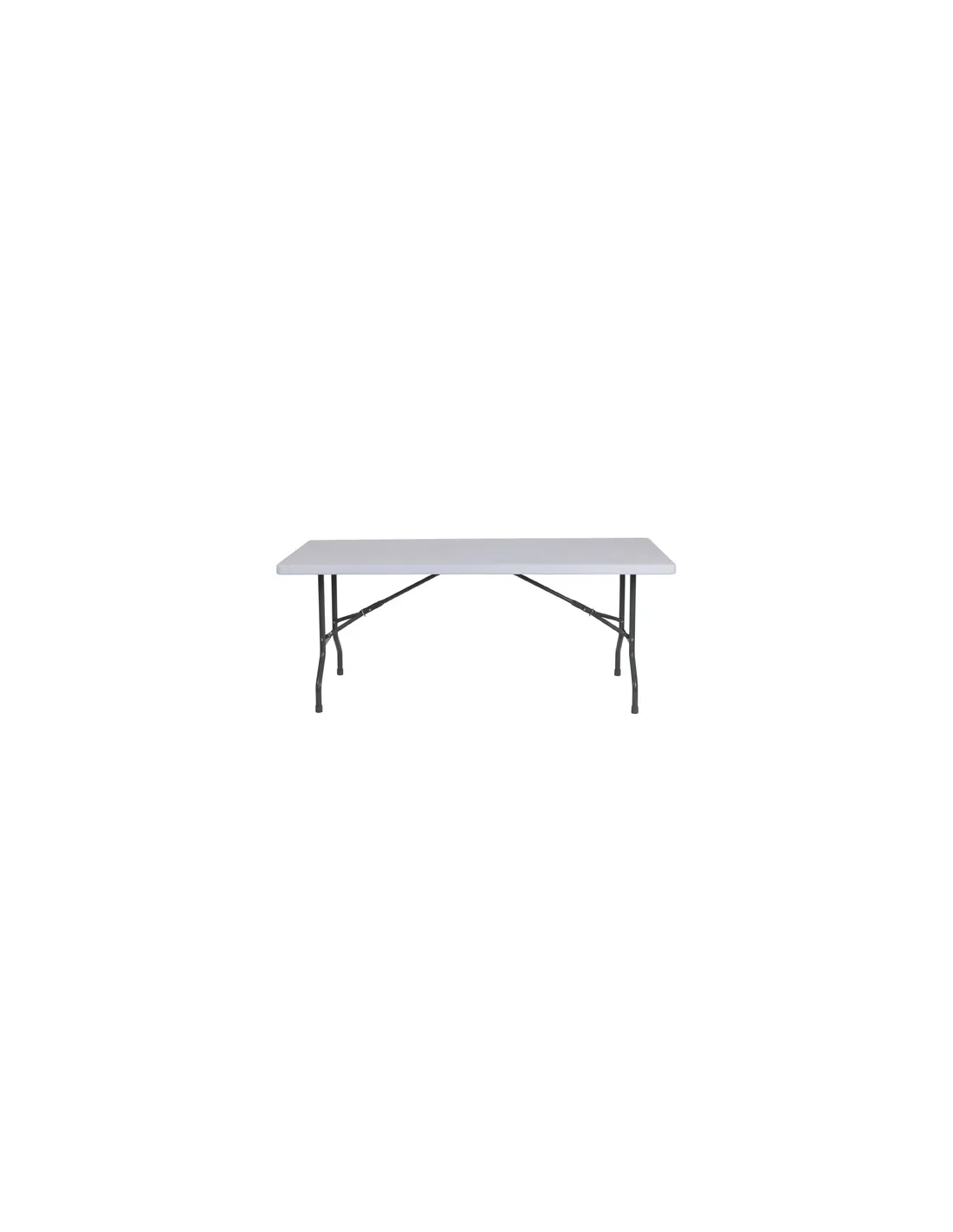 Mesa de eventos para uso interior / exterior Tapa fabricada 100% polietileno virgen alta densidad HDPE color blanco Tratamiento anti UV Resistente a impactos Esquinas reforzadas Resistente a las manchas y muy fácil de limpiar Estructura de acero con acabado de pintura en polvo Plegable para un fácil almacenamiento Medidas: 183 x 70 x 76 cm Producto de uso profesional, alta calidad y durabilidad - Unidad venta : caja 1 Ud - Volumen : 0 073 M 3 x Ud Entradas previstas :Pendiente reposición Colores disponibles : Blanco Pendiente reposición