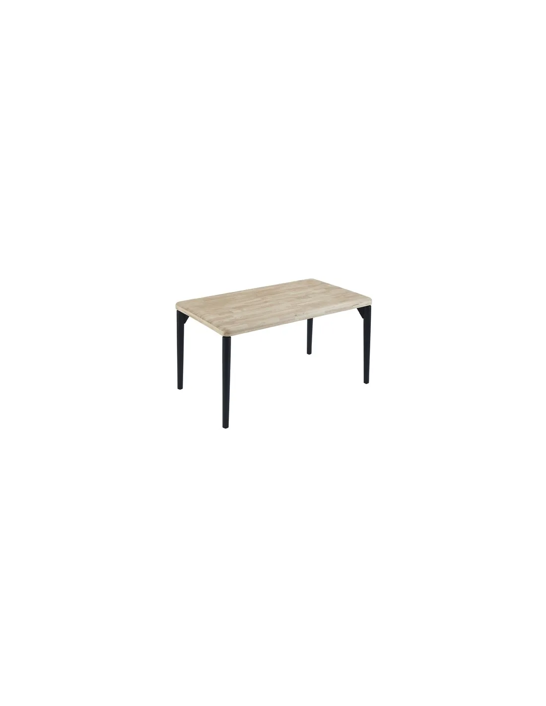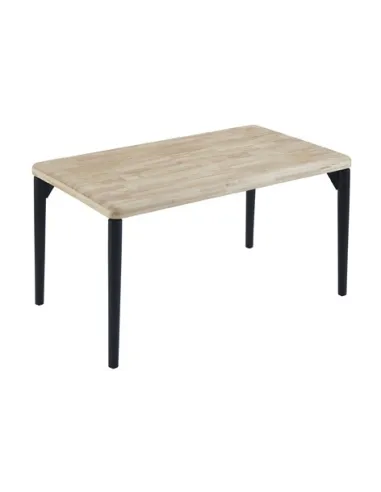 Tapa en madera de roble Bordes y esquinas redondeados Patas metálicas en color negro Medidas: 140 x 80 x 76 cm - Unidad venta : caja 1 Ud - Volumen : 0 088 M 3 x Ud Entradas previstas : Colores disponibles : Bordes redondeados Roble nordish / negro En stock : 12 Uds En stock : 12 Uds