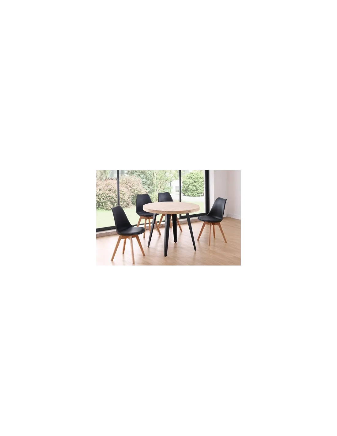 MESA COMEDOR REDONDA FIJA BERG 100 CM ROBLE NORDISH / NEGRO