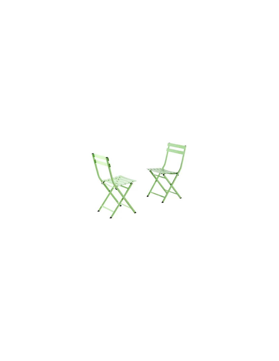 Set cafe compuesto por una mesa redonda y dos sillas Uso exterior / interior Mesa y sillas plegables Conjunto completo fabricado en metal Color pistacho Medidas mesa: 60 x 60 x 71,5 cm Medidas sillas: 38 x 42 x 80 cm - Unidad venta : caja 1 Ud - Volumen : 0 185 M 3 x Ud Entradas previstas : Colores disponibles : Pistacho En stock : 15 Uds En stock : 15 Uds