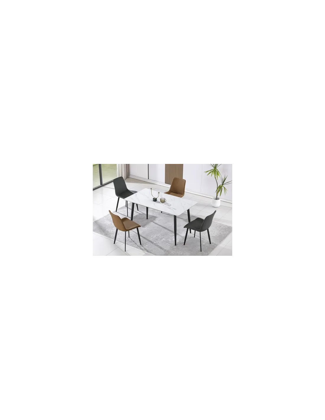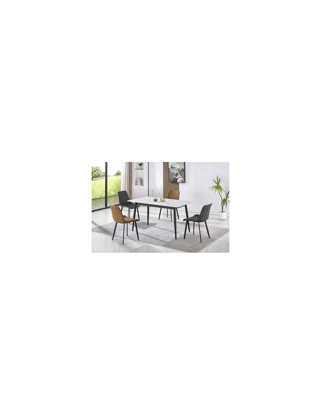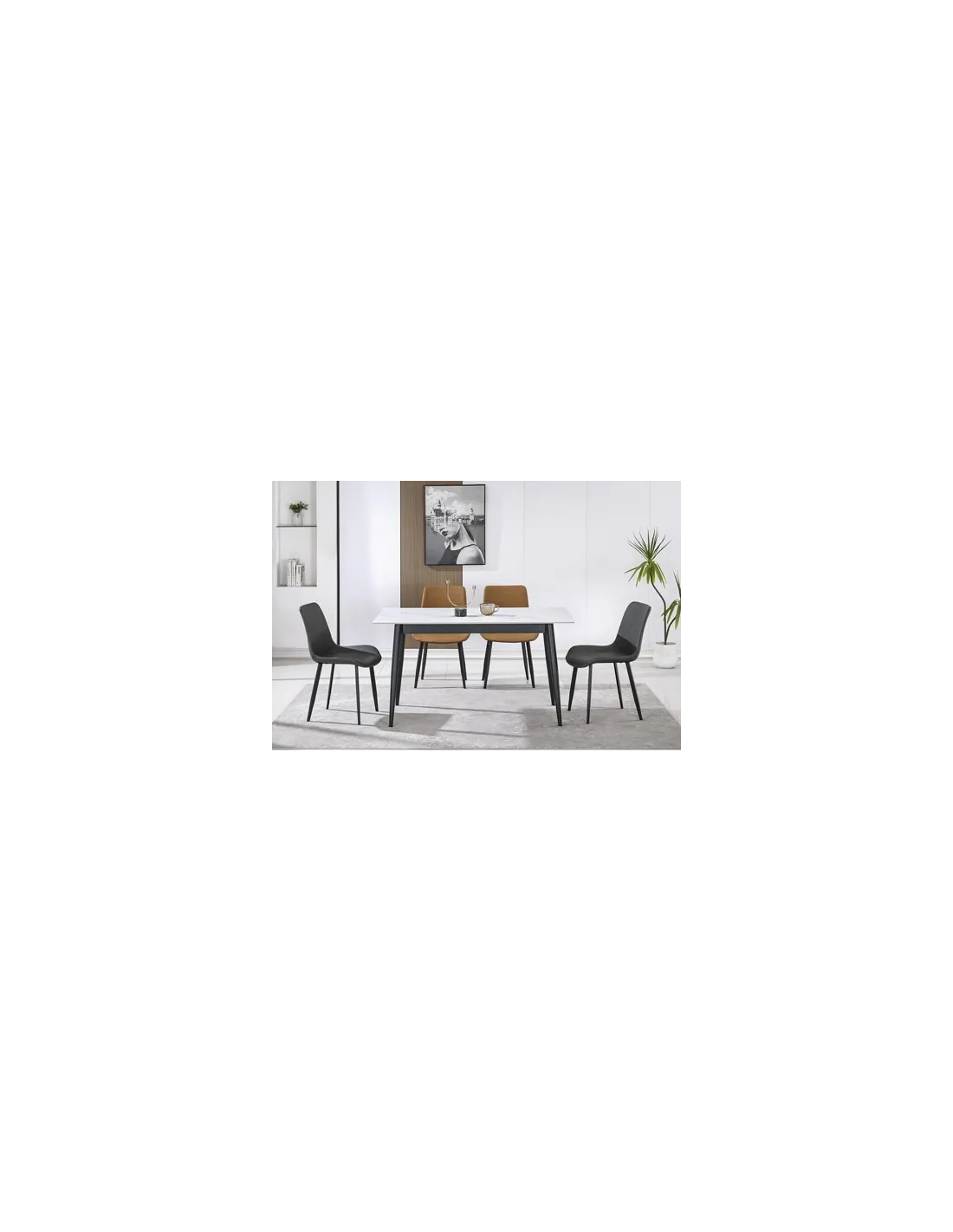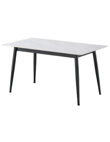 Mesa comedor fija Tapa ceramica color blanco en piedra sinterizada 12 mm de grosor con base de madera Patas metálicas cónicas en color negro Medidas: 140 x 80 x 75 cm - Unidad venta : caja 1 Ud - Volumen : 0 101 M 3 x Ud Entradas previstas : 10 Ud(s) - 15/03 Colores disponibles : Ceramic blanco / negro En stock : 26 Uds Gres gris / negro En stock : 38 Uds En stock : 26 Uds