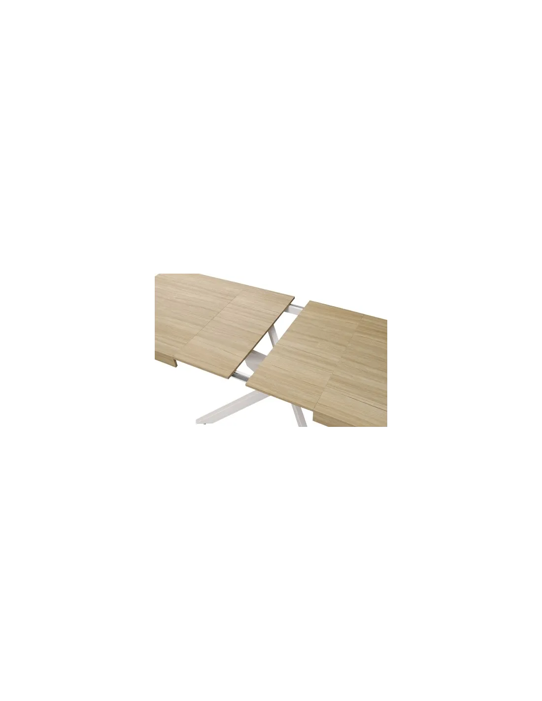 Mesa comedor extensible 2 extensibles independientes bajo la tapa Extensible a 200 o 240 cm Tapa en MDF 18 mm grosor y papel laminado 3D Grosor borde tapa 90 mm Patas metálicas color blanco Medidas: 160 - 200- 240 x 90 x 76 cm - Unidad venta : caja 1 Ud - Volumen : 0 24 M 3 x Ud Entradas previstas : 35 Ud(s) - 14/04 Colores disponibles : Oak / Negro 46 Ud(s) - 14/04 Oak / Blanco 35 Ud(s) - 14/04 46 Ud(s) - 14/04