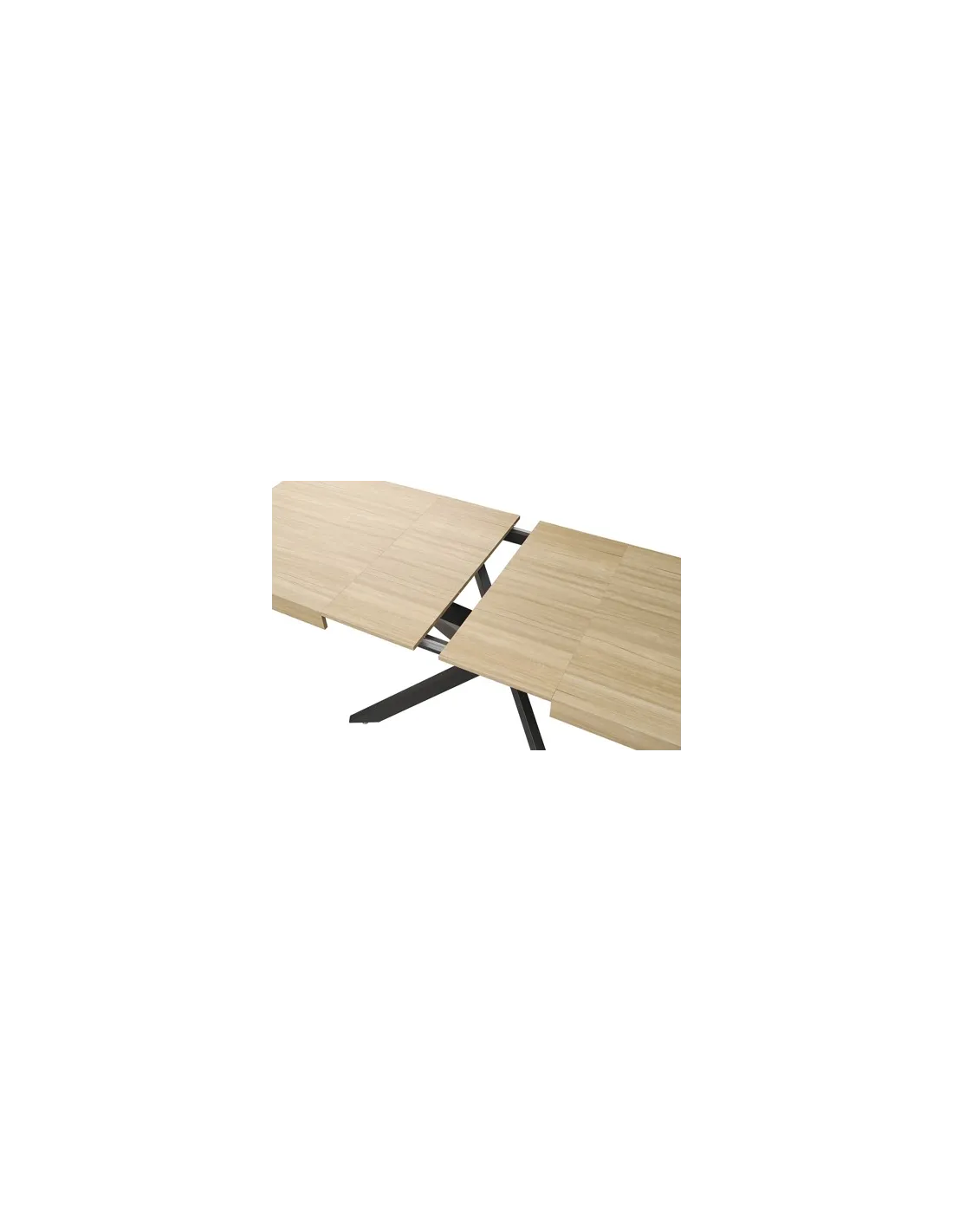 Mesa comedor extensible 2 extensibles independientes bajo la tapa Extensible a 200 o 240 cm Tapa en MDF 18 mm grosor y papel laminado 3D Grosor borde tapa 90 mm Patas metálicas color negro Medidas: 160 - 200- 240 x 90 x 76 cm - Unidad venta : caja 1 Ud - Volumen : 0 24 M 3 x Ud Entradas previstas : 46 Ud(s) - 14/04 Colores disponibles : Oak / Negro 46 Ud(s) - 14/04 Oak / Blanco 35 Ud(s) - 14/04 46 Ud(s) - 14/04