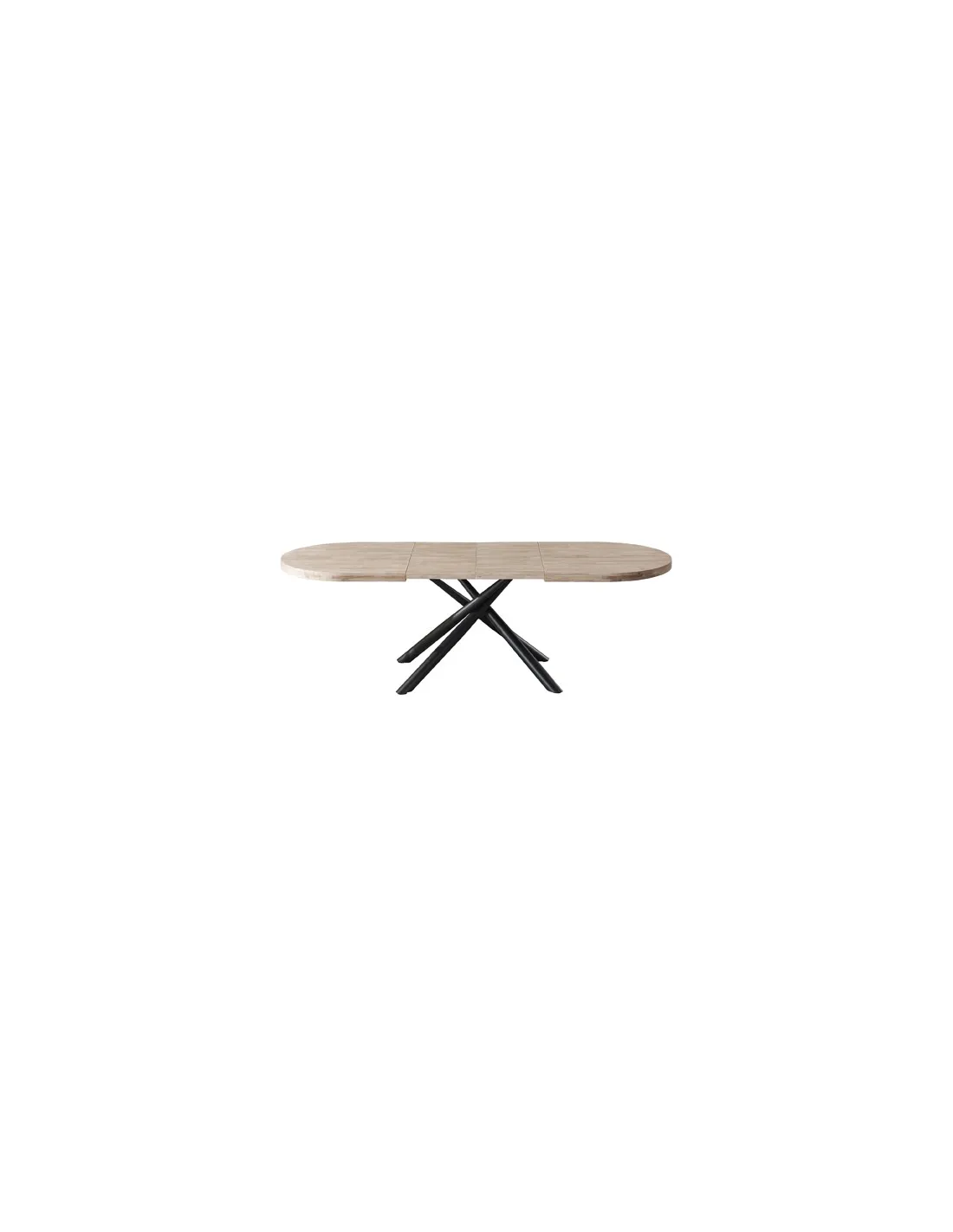 Mesa comedor oval extensible Tapa en madera de roble 2 extensibles individuales de 40 cm ancho Extensible a 200 o 240 cm Color Honey Patas metálicas en color negro Medidas: 160 - 2000 - 240 x 90 x 76 cm - Unidad venta : caja 1 Ud - Volumen : 0 265 M 3 x Ud Entradas previstas : 15 Ud(s) - 22/03 Colores disponibles : Roble nordish / negro 20 Ud(s) - 22/03 Roble honey / negro 15 Ud(s) - 22/03 20 Ud(s) - 22/03