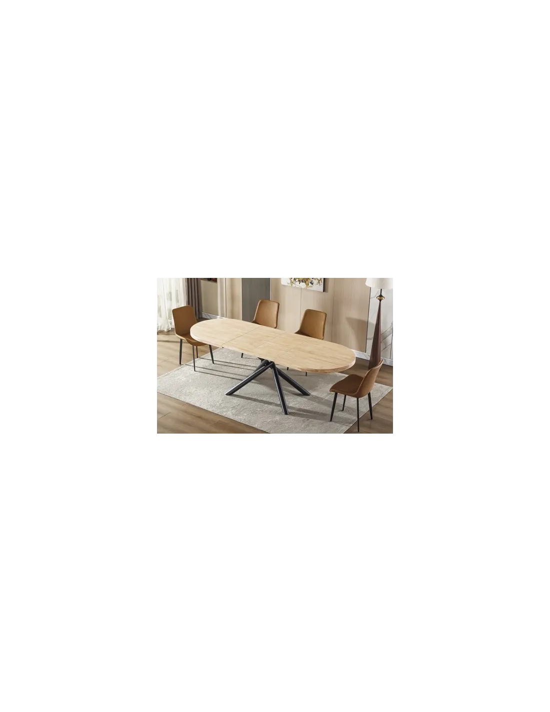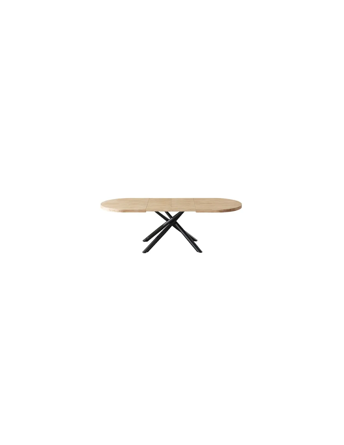 Mesa comedor oval extensible Tapa en madera de roble 2 extensibles individuales de 40 cm ancho Extensible a 200 o 240 cm Color Nordish Patas metálicas en color negro Medidas: 160 - 200 - 240 x 90 x 76 cm - Unidad venta : caja 1 Ud - Volumen : 0 265 M 3 x Ud Entradas previstas : 20 Ud(s) - 22/03 Colores disponibles : Roble nordish / negro 20 Ud(s) - 22/03 Roble honey / negro 15 Ud(s) - 22/03 20 Ud(s) - 22/03