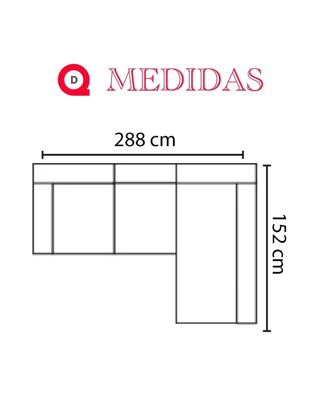 Largo: 288cm - Fondo: 152cm - Alto: 105cm